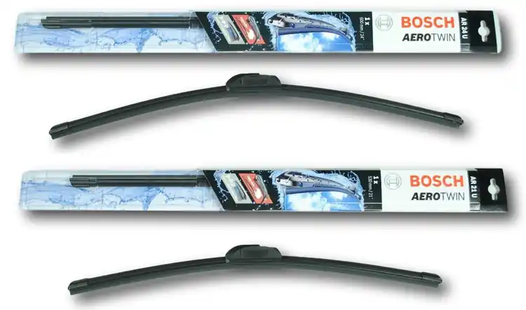 Nowe wycieraczki – zapakowane w oryginalne opakowanie producenta – cena zakupu dotyczy 1kompletu (strona kierowcy i pasażera).Wycieraczki Bosch Aerotwin posiadają konstrukcję aerodynamiczną i nie mają klasycznych przegubów. W ich wnętrzu znajduje się specjalna szyna stabilizująca Evodium, która odpowiada za przyleganie do szyby i sztywność wycieraczki. Do konstrukcji pióra wycieraczki zastosowano 2 rodzaje gumy. Na górze znajduje się część miękka odpowiadająca za cichą pracę, natomiast na dole twarda, która ma za zadanie precyzyjne czyszczenie szyby ze śniegu, wody itp.; dodatkowo pokryta  jest specjalną powłoką, powodującą lepszy poślizg na szybie, aby siła tarcia była jak najmniejsza. Wycieraczki Bosch Aerotwin spełniają swoją rolę nawet przy dużych prędkościach dzięki spojlerowi wbudowanemu na całej długości wycieraczki, który sprawia, że pęd powietrza dociska wycieraczkę do szyby.Zalety wycieraczek Bosch Aerotwin:- Bosch Aerotwin Noe jest tańszą wersją gamy Aerotwin- bardzo łatwy montaż na ramiona typu „U”- precyzyjne wycieranie szyby- zmniejszenie szumu powietrza poprzez bardziej opływowy kształt- nie zamarzanie zimą poszczególnych elementów wycieraczki dzięki zastosowaniu wewnętrznej szyny Evodium- nowoczesny wygląd- spojler wmontowany na całej długości, poprawiający przyleganie wycieraczki do szyby przy dużych prędkościach.Jak dbać o wycieraczki:- pamiętaj, aby dbać o gumę wycieraczki usuwając z niej brud, owady itp., które osiadły podczas jej pracy (wykorzystać można do tego łagodny detergent); zapominanie o usuwaniu zanieczyszczeń, może doprowadzić do uszkodzenia gumy wycieraczki- nigdy nie używaj wycieraczek, gdy szyba jest sucha;  tarcie gumy po suchej szybie może doprowadzić do szybkiego jej zużycia- jeżeli wycieraczka na szybie podskakuje, może to być oznaką, że ramię wycieraczki jest skrzywione; w takim przypadku należy dokonać jego regulacji- jeżeli planujesz pozostawienie samochodu na słońcu przez kilka dni, ustaw wycieraczki tak, aby nie stykały się z szybą- po wizycie na myjni, pamiętaj, aby zawsze dokładnie oczyścić szybę, ponieważ znajdujący się na niej wosk, może powodować przeskakiwanie wycieraczki- pamiętaj również, aby nie uruchamiać wycieraczek na zamarzniętej szybie; może to bowiem doprowadzić do ich uszkodzenia lub oderwania gumy od mocowania.Czy wiesz że:- pierwsza wycieraczka wprowadzona została przez Boscha w okresie międzywojennym w 1926r. i napędzana była silnikiem elektrycznym- pierwszą wycieraczkę bezprzegubową – Bosch wprowadził do produkcji w 1999r.- 750 000 cykli oczyszczania! Tak wycieraczki Bosch są testowane pod kątem wytrzymałości mechanicznej- wycieraczki Bosch są przystosowane do pracy w temperaturach od -30 do +80 stopni Celsjusza.
