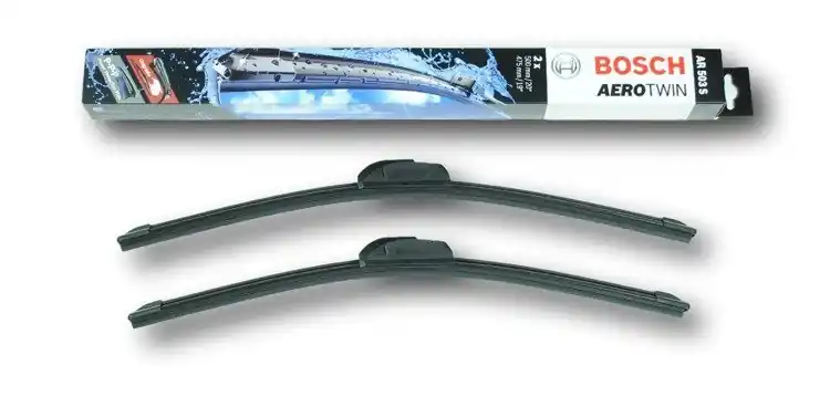 Nowe wycieraczki – zapakowane w oryginalne opakowanie producenta – cena zakupu dotyczy 1kompletu (strona kierowcy i pasażera).Wycieraczki Bosch Aerotwin posiadają konstrukcję aerodynamiczną i nie mają klasycznych przegubów. W ich wnętrzu znajduje się specjalna szyna stabilizująca Evodium, która odpowiada za przyleganie do szyby i sztywność wycieraczki. Do konstrukcji pióra wycieraczki zastosowano 2 rodzaje gumy. Na górze znajduje się część miękka odpowiadająca za cichą pracę, natomiast na dole twarda, która ma za zadanie precyzyjne czyszczenie szyby ze śniegu, wody itp. Dodatkowo pokryta jest specjalną powłoką, powodującą lepszy poślizg na szybie, aby siła tarcia była jak najmniejsza. Wycieraczki Bosch Aerotwin spełniają swoją rolę nawet przy dużych prędkościach dzięki spojlerowi wbudowanemu na całej długości wycieraczki, który sprawia, że pęd powietrza dociska wycieraczkę do szyby.Zalety wycieraczek Bosch Aerotwin:- bardzo łatwy montaż na ramiona typu „U”- precyzyjne wycieranie szyby- zmniejszenie szumu powietrza poprzez bardziej opływowy kształt- nie zamarzanie zimą poszczególnych elementów wycieraczki dzięki zastosowaniu wewnętrznej szyny Evodium- nowoczesny wygląd- spojler wmontowany na całej długości, poprawiający przyleganie wycieraczki do szyby przy dużych prędkościach.Jak dbać o wycieraczki:- pamiętaj, aby dbać o gumę wycieraczki usuwając z niej brud, owady itp., które osiadły podczas jej pracy (wykorzystać można do tego łagodny detergent); zapominanie o usuwaniu zanieczyszczeń, może doprowadzić do uszkodzenia gumy wycieraczki- nigdy nie używaj wycieraczek, gdy szyba jest sucha;  tarcie gumy po suchej szybie może doprowadzić do szybkiego jej zużycia- jeżeli wycieraczka na szybie podskakuje, może to być oznaką, że ramię wycieraczki jest skrzywione; w takim przypadku należy dokonać jego regulacji- jeżeli planujesz pozostawienie samochodu na słońcu przez kilka dni, ustaw wycieraczki tak, aby nie stykały się z szybą- po wizycie na myjni, pamiętaj, aby zawsze dokładnie oczyścić szybę, ponieważ znajdujący się na niej wosk, może powodować przeskakiwanie wycieraczki- pamiętaj również, aby nie uruchamiać wycieraczek na zamarzniętej szybie; może to bowiem doprowadzić do ich uszkodzenia lub oderwania gumy od mocowania.Czy wiesz że:- pierwsza wycieraczka wprowadzona została przez Boscha w okresie międzywojennym w 1926r. i napędzana była silnikiem elektrycznym- pierwszą wycieraczkę bezprzegubową – Bosch wprowadził do produkcji w 1999r.- 750 000 cykli oczyszczania! Tak wycieraczki Bosch są testowane pod kątem wytrzymałości mechanicznej- wycieraczki Bosch są przystosowane do pracy w temperaturach od -30 do +80 stopni Celsjusza.