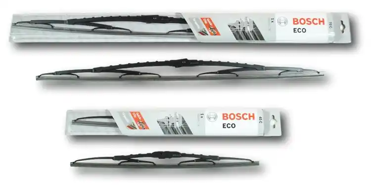 Wycieraczki są nowe – w oryginalnym opakowaniu producenta – cena zakupu dotyczy 1-kompletu (odpowiednio dobrane długości i modele wycieraczek – strona kierowcy oraz pasażera).- Wycieraczki Bosch Eco= Jakość + Korzystna cena.- Konstrukcja wycieraczekBoschEco= metalowa, lakierowana konstrukcja z nitowanymi przegubami.- Naturalna guma pióra + grafitowa powłoka poślizgowa wycieraczekBoschEco= dokładne wycieranie szyby bez przeskakiwania.- Adapter Quick Clip (na mocowanie hakowe) zamontowany na stałe w wycieraczceBoschEco=szybka i łatwa wymiana wycieraczek.