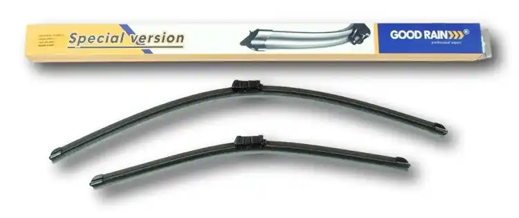 Nowe wycieraczki ;  zapakowane woryginalne opakowanie producenta. Cena zakupu dotyczy 1kompletu (stronakierowcy i pasażera).Wycieraczki Good Rain na przednią szybęsamochodu posiadają  konstrukcję bezprzegubową. Guma w wycieraczkachpokryta jest specjalną powłoką, dzięki, której szyba jest bardzo dobrzeczyszczona. Na całej długości wycieraczki znajduje się spojler, któregozadaniem jest dociskanie jej do powierzchni szyby, nawet przy dużychprędkościach. Duży wpływ na dobre przyleganie wycieraczek do szyby samochodu marównież zastosowana w ich konstrukcji specjalna prowadnica, dzięki, której siłanacisku jest  regularnie rozłożona na całej długości pióra wycieraczki. Stałynadzór nad  procesem  produkcji oraz wysokiej jakości produkty użytedo ich wykonania sprawiają , że wycieraczki te, profesjonalnie spisują się wkażdych warunkach atmosferycznych.   Zalety wycieraczek Good Rain:- bardzo łatwy montażna ramiona- wysoka jakość za przystępną cenę- skuteczne wycieranie szyby- zmniejszenie szumu powietrza poprzez bardziejopływowy kształt- zaawansowana technologia i nowoczesnywyglądJak dbać o wycieraczki:- pamiętaj, aby dbać o gumę wycieraczkiusuwając z niej brud, owady itp., które osiadły podczas jej pracy (wykorzystaćmożna do tego łagodny detergent); zapominanie o usuwaniu zanieczyszczeń, możedoprowadzić do uszkodzenia gumy wycieraczki- nigdy nie używaj wycieraczek, gdyszyba jest sucha;  tarcie gumy po suchej szybie może doprowadzić doszybkiego jej zużycia- jeżeli wycieraczka na szybiepodskakuje, może to być oznaką, że ramię wycieraczki jest skrzywione; w takimprzypadku należy dokonać jego regulacji- jeżeli planujesz pozostawieniesamochodu  na słońcu przez kilka dni, ustaw wycieraczki tak, aby niestykały się z szybą- po wizycie na myjni, pamiętaj, abyzawsze dokładnie oczyścić szybę, ponieważ znajdujący się na niej wosk, możepowodować przeskakiwanie wycieraczki- pamiętaj również,aby nie uruchamiać wycieraczek  na zamarzniętej szybie; może to bowiemdoprowadzić do ich uszkodzenia lub oderwania gumy od mocowania.