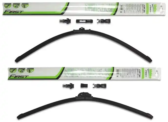 Nowe wycieraczki; zapakowane w oryginalne opakowanie producenta. Cena zakupu dotyczy 1kompletu (strona kierowcy i pasażera).Wycieraczki Valeo First Multiconnection to wysoka jakość i atrakcyjna cena.Bezszkieletowe wycieraczki Valeo First posiadają metalowe listwy, które zapewniają optymalny docisk do powierzchni szyby, a tym samym doskonałą widoczność nawet w niekorzystnych warunkach atmosferycznych.Gumowe pióra wycieraczek wykonane są ze specjalnej mieszanki obrabianego kauczuku, co znacznie poprawia skuteczność czyszczenia powierzchni szyby.Innowacyjny kształt spojlera w technologii „PYRAMID” zapewnia optymalny docisk do powierzchni szyby oraz cichą pracę nawet przy dużych prędkościach.Na opakowaniu wycieraczek First Multiconnection podany jest sposób ich montażu oraz przykładowa lista zastosowań.Wycieraczki First zostały zaprojektowane i wyprodukowane na całkowicie zautomatyzowanych liniach montażowych w nowych fabrykach Valeo.W opakowaniu wycieraczek First Multiconnection znajduje się kilka adapterów. Klient samodzielnie wybiera i montuje właściwy adapter. Zalety wycieraczek Valeo First Multiconnection:- bardzo łatwy montaż- precyzyjne wycieranie szyby- zmniejszenie szumu powietrza poprzez bardziej opływowy kształt- nie zamarzanie zimą poszczególnych elementów wycieraczki- nowoczesny wygląd- spojler na całej długości, poprawiający przyleganie wycieraczki do powierzchni szyby przy dużych  prędkościach.Jak dbać o wycieraczki:- pamiętaj, aby dbać o gumę wycieraczki usuwając z niej brud, owady itp., które osiadły podczas jej pracy (wykorzystać można do tego łagodny detergent); zapominanie o usuwaniu zanieczyszczeń, może doprowadzić do uszkodzenia gumy wycieraczki- nigdy nie używaj wycieraczek, gdy szyba jest sucha;  tarcie gumy po suchej szybie może doprowadzić do szybkiego jej zużycia- jeżeli wycieraczka na szybie podskakuje, może to być oznaką, że ramię wycieraczki jest skrzywione; w takim przypadku należy dokonać jego regulacji- jeżeli planujesz pozostawienie samochodu  na słońcu przez kilka dni, ustaw wycieraczki tak, aby nie stykały się z szybą- po wizycie na myjni, pamiętaj, aby zawsze dokładnie oczyścić szybę, ponieważ znajdujący się na niej wosk, może powodować przeskakiwanie wycieraczki- pamiętaj również, aby nie uruchamiać wycieraczek na zamarzniętej szybie; może to bowiem doprowadzić do ich uszkodzenia lub oderwania gumy od mocowania.
