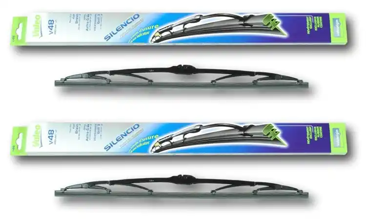 Nowe wycieraczki – zapakowane w oryginalne opakowanie producenta – cena zakupu dotyczy 1kompletu (strona kierowcy i pasażera).Wycieraczki Valeo Silencio na przednią szybę posiadają konstrukcję klasyczną i zbudowane są z metalowych przegubów. Specjalny skład gumy sprawia, że doskonale spisują się w każdych warunkach atmosferycznych. Guma posiada specjalne struktury(kanaliki) do rozprowadzania „płynu do spryskiwaczy” po całej powierzchni szyby. Ponadto guma wycieraczki pokryta  została specjalną warstwą grafitu zapewniającą optymalne wycieranie szyby. Gama wycieraczek Valeo Silencio to najwyżej sklasyfikowana gama klasycznych wycieraczek firmy Valeo. Wycieraczki posiadają wskaźnik zużycia, który stopniowo zmienia kolor z czarnego na żółty, sygnalizując potrzebę ewentualnej ich wymiany. Wycieraczki montuje się bardzo szybko i sprawnie; obrazkowa instrukcja montażu znajduje się na ich opakowaniu.Zalety wycieraczek Valeo Silencio:- bardzo łatwy montaż- precyzyjne wycieranie szyby- najwyższa jakość wykonania oraz zastosowanych materiałówJak dbać o wycieraczki:- pamiętaj, aby dbać o gumę wycieraczki usuwając z niej brud, owady itp., które osiadły podczas jej pracy (wykorzystać można do tego łagodny detergent); zapominanie o usuwaniu zanieczyszczeń, może doprowadzić do uszkodzenia gumy wycieraczki- nigdy nie używaj wycieraczek, gdy szyba jest sucha;  tarcie gumy po suchej szybie może doprowadzić do szybkiego jej zużycia- jeżeli wycieraczka na szybie podskakuje, może to być oznaką, że ramię wycieraczki jest skrzywione; w takim przypadku należy dokonać jego regulacji- jeżeli planujesz pozostawienie samochodu na słońcu przez kilka dni, ustaw wycieraczki tak, aby nie stykały się z szybą- po wizycie na myjni, pamiętaj, aby zawsze dokładnie oczyścić szybę, ponieważ znajdujący się na niej wosk, może powodować przeskakiwanie wycieraczki- pamiętaj również, aby nie uruchamiać wycieraczek na zamarzniętej szybie, może to bowiem doprowadzić do ich uszkodzenia lub oderwania gumy od mocowania.
