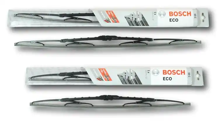Nowe wycieraczki – zapakowane w oryginalne opakowanie producenta – cena zakupu dotyczy 1- kompletu (strona kierowcy i pasażera).Wycieraczki Bosch Eco są przeznaczone dla klientów, którzy poszukują wycieraczek w korzystnej cenie, a jednocześnie dobrych jakościowo.Konstrukcja wycieraczek Bosch Eco to sprawdzone już wcześniej rozwiązanie, a mianowicie metalowy, lakierowany szkielet z nitowanymi przegubami. Są to wycieraczki przeznaczone do montażu na mocowaniu hakowym.Pióra wycieraczki Bosch Eco to naturalna guma i grafitowa powłoka poślizgowa, dzięki której wycieranie szyby jest skuteczne nawet w niesprzyjających warunkach atmosferycznych.Zamontowany na stałe adapterQuick-Clip umożliwia łatwą i szybką wymianę wycieraczek Bosch Eco.Jak dbać o wycieraczki:- pamiętaj, aby dbać o gumę wycieraczki usuwając z niej brud, owady itp., które osiadły podczas jej pracy (wykorzystać można do tego łagodny detergent); zapominanie o usuwaniu zanieczyszczeń, może doprowadzić do uszkodzenia gumy wycieraczki- nigdy nie używaj wycieraczek, gdy szyba jest sucha; tarcie gumy po suchej szybie może doprowadzić do szybkiego jej zużycia- jeżeli wycieraczka na szybie podskakuje, może to być oznaką, że ramię wycieraczki jest skrzywione; w takim przypadku należy dokonać jego regulacji- jeżeli planujesz pozostawienie samochodu na słońcu przez kilka dni, ustaw wycieraczki tak, aby nie stykały się z szybą- po wizycie na myjni, pamiętaj, aby zawsze dokładnie oczyścić szybę, ponieważ znajdujący się na niej wosk, może powodować przeskakiwanie wycieraczki- pamiętaj również, aby nie uruchamiać wycieraczek na zamarzniętej szybie; może to bowiem doprowadzić do ich uszkodzenia lub oderwania gumy od mocowania.Czy wiesz że:- pierwsza wycieraczka wprowadzona została przez Boscha w okresie międzywojennym w 1926r. i napędzana była silnikiem elektrycznym- pierwszą wycieraczkę bezprzegubową – Bosch wprowadził do produkcji w 1999r.- 750000 cykli oczyszczania! Tak wycieraczki Bosch są testowane pod kątem wytrzymałości mechanicznej- wycieraczki Bosch są przystosowane do pracy w temperaturach od -30 do +80 stopni Celsjusza.