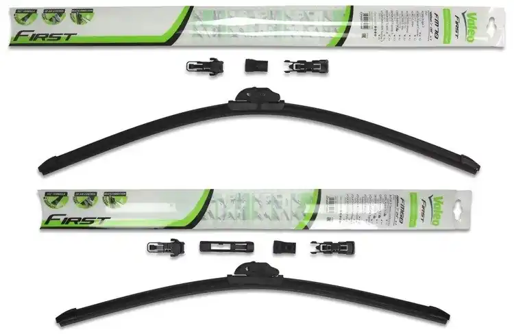 Nowe wycieraczki; zapakowane w oryginalne opakowanie producenta. Cena zakupu dotyczy 1kompletu (strona kierowcy i pasażera).Wycieraczki Valeo First Multiconnection to wysoka jakość i atrakcyjna cena.Bezszkieletowe wycieraczki Valeo First posiadają metalowe listwy, które zapewniają optymalny docisk do powierzchni szyby, a tym samym doskonałą widoczność nawet w niekorzystnych warunkach atmosferycznych.Gumowe pióra wycieraczek wykonane są ze specjalnej mieszanki obrabianego kauczuku, co znacznie poprawia skuteczność czyszczenia powierzchni szyby.Innowacyjny kształt spojlera w technologii „PYRAMID” zapewnia optymalny docisk do powierzchni szyby oraz cichą pracę nawet przy dużych prędkościach.Na opakowaniu wycieraczek First Multiconnection podany jest sposób ich montażu oraz przykładowa lista zastosowań.Wycieraczki First zostały zaprojektowane i wyprodukowane na całkowicie zautomatyzowanych liniach montażowych w nowych fabrykach Valeo.W opakowaniu wycieraczek First Multiconnection znajduje się kilka adapterów. Klient samodzielnie wybiera i montuje właściwy adapter. Zalety wycieraczek Valeo First Multiconnection:- bardzo łatwy montaż- precyzyjne wycieranie szyby- zmniejszenie szumu powietrza poprzez bardziej opływowy kształt- nie zamarzanie zimą poszczególnych elementów wycieraczki- nowoczesny wygląd- spojler na całej długości, poprawiający przyleganie wycieraczki do powierzchni szyby przy dużych  prędkościach.Jak dbać o wycieraczki:- pamiętaj, aby dbać o gumę wycieraczki usuwając z niej brud, owady itp., które osiadły podczas jej pracy (wykorzystać można do tego łagodny detergent); zapominanie o usuwaniu zanieczyszczeń, może doprowadzić do uszkodzenia gumy wycieraczki- nigdy nie używaj wycieraczek, gdy szyba jest sucha;  tarcie gumy po suchej szybie może doprowadzić do szybkiego jej zużycia- jeżeli wycieraczka na szybie podskakuje, może to być oznaką, że ramię wycieraczki jest skrzywione; w takim przypadku należy dokonać jego regulacji- jeżeli planujesz pozostawienie samochodu  na słońcu przez kilka dni, ustaw wycieraczki tak, aby nie stykały się z szybą- po wizycie na myjni, pamiętaj, aby zawsze dokładnie oczyścić szybę, ponieważ znajdujący się na niej wosk, może powodować przeskakiwanie wycieraczki- pamiętaj również, aby nie uruchamiać wycieraczek na zamarzniętej szybie; może to bowiem doprowadzić do ich uszkodzenia lub oderwania gumy od mocowania.