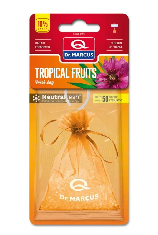 Opis produktu i zastosowanieWszechobecne doznania zamknięte w małym woreczku. Nasączone polimerowe kulki francuskimi perfumami zamknięte w szykownym woreczku z praktycznym sznurkiem. Woreczków Dr. Marcus można używać w samochodzie, ale także np. w szafach lub szufladach.To dyskretny i gustowny dodatek do każdego wnętrza, a także świetny pomysł na prezent. Produkt może być używany do samochodu, domu i biura. Zapach uwalnia się powoli do 45 dni. Waga: 20 g.