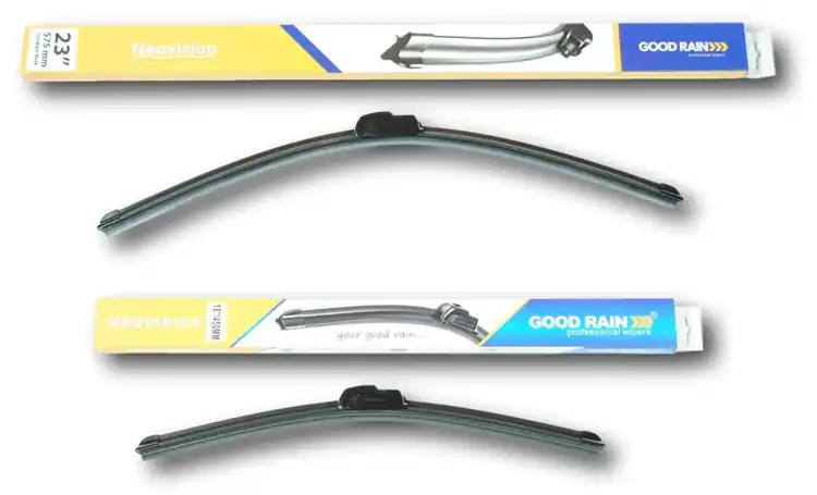 Nowe wycieraczki ;  zapakowane woryginalne opakowanie producenta. Cena zakupu dotyczy 1kompletu (stronakierowcy i pasażera).Wycieraczki Good Rain na przednią szybęsamochodu posiadają  konstrukcję bezprzegubową. Guma w wycieraczkachpokryta jest specjalną powłoką, dzięki, której szyba jest bardzo dobrzeczyszczona. Na całej długości wycieraczki znajduje się spojler, któregozadaniem jest dociskanie jej do powierzchni szyby, nawet przy dużychprędkościach. Duży wpływ na dobre przyleganie wycieraczek do szyby samochodu marównież zastosowana w ich konstrukcji specjalna prowadnica, dzięki, której siłanacisku jest  regularnie rozłożona na całej długości pióra wycieraczki. Stałynadzór nad  procesem  produkcji oraz wysokiej jakości produkty użytedo ich wykonania sprawiają , że wycieraczki te, profesjonalnie spisują się wkażdych warunkach atmosferycznych.   Zalety wycieraczek Good Rain:- bardzo łatwy montażna ramiona- wysoka jakość za przystępną cenę- skuteczne wycieranie szyby- zmniejszenie szumu powietrza poprzez bardziejopływowy kształt- zaawansowana technologia i nowoczesnywyglądJak dbać o wycieraczki:- pamiętaj, aby dbać o gumę wycieraczkiusuwając z niej brud, owady itp., które osiadły podczas jej pracy (wykorzystaćmożna do tego łagodny detergent); zapominanie o usuwaniu zanieczyszczeń, możedoprowadzić do uszkodzenia gumy wycieraczki- nigdy nie używaj wycieraczek, gdyszyba jest sucha;  tarcie gumy po suchej szybie może doprowadzić doszybkiego jej zużycia- jeżeli wycieraczka na szybiepodskakuje, może to być oznaką, że ramię wycieraczki jest skrzywione; w takimprzypadku należy dokonać jego regulacji- jeżeli planujesz pozostawieniesamochodu  na słońcu przez kilka dni, ustaw wycieraczki tak, aby niestykały się z szybą- po wizycie na myjni, pamiętaj, abyzawsze dokładnie oczyścić szybę, ponieważ znajdujący się na niej wosk, możepowodować przeskakiwanie wycieraczki- pamiętaj również,aby nie uruchamiać wycieraczek  na zamarzniętej szybie; może to bowiemdoprowadzić do ich uszkodzenia lub oderwania gumy od mocowania.