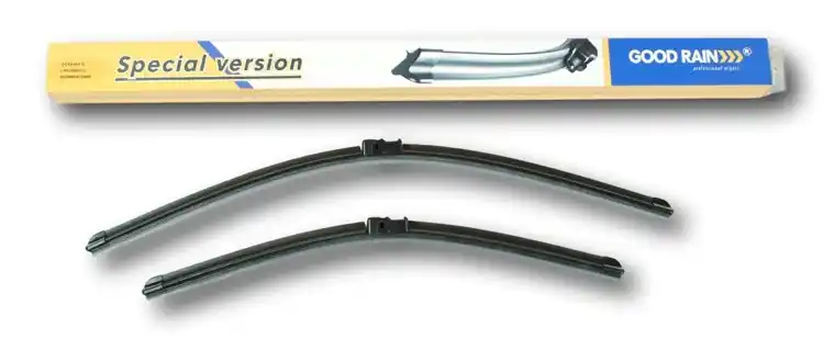 Nowe wycieraczki ;  zapakowane woryginalne opakowanie producenta. Cena zakupu dotyczy 1kompletu (stronakierowcy i pasażera).Wycieraczki Good Rain na przednią szybęsamochodu posiadają  konstrukcję bezprzegubową. Guma w wycieraczkachpokryta jest specjalną powłoką, dzięki, której szyba jest bardzo dobrzeczyszczona. Na całej długości wycieraczki znajduje się spojler, któregozadaniem jest dociskanie jej do powierzchni szyby, nawet przy dużychprędkościach. Duży wpływ na dobre przyleganie wycieraczek do szyby samochodu marównież zastosowana w ich konstrukcji specjalna prowadnica, dzięki, której siłanacisku jest  regularnie rozłożona na całej długości pióra wycieraczki. Stałynadzór nad  procesem  produkcji oraz wysokiej jakości produkty użytedo ich wykonania sprawiają , że wycieraczki te, profesjonalnie spisują się wkażdych warunkach atmosferycznych.   Zalety wycieraczek Good Rain:- bardzo łatwy montażna ramiona- wysoka jakość za przystępną cenę- skuteczne wycieranie szyby- zmniejszenie szumu powietrza poprzez bardziejopływowy kształt- zaawansowana technologia i nowoczesnywyglądJak dbać o wycieraczki:- pamiętaj, aby dbać o gumę wycieraczkiusuwając z niej brud, owady itp., które osiadły podczas jej pracy (wykorzystaćmożna do tego łagodny detergent); zapominanie o usuwaniu zanieczyszczeń, możedoprowadzić do uszkodzenia gumy wycieraczki- nigdy nie używaj wycieraczek, gdyszyba jest sucha;  tarcie gumy po suchej szybie może doprowadzić doszybkiego jej zużycia- jeżeli wycieraczka na szybiepodskakuje, może to być oznaką, że ramię wycieraczki jest skrzywione; w takimprzypadku należy dokonać jego regulacji- jeżeli planujesz pozostawieniesamochodu  na słońcu przez kilka dni, ustaw wycieraczki tak, aby niestykały się z szybą- po wizycie na myjni, pamiętaj, abyzawsze dokładnie oczyścić szybę, ponieważ znajdujący się na niej wosk, możepowodować przeskakiwanie wycieraczki- pamiętaj również,aby nie uruchamiać wycieraczek  na zamarzniętej szybie; może to bowiemdoprowadzić do ich uszkodzenia lub oderwania gumy od mocowania.