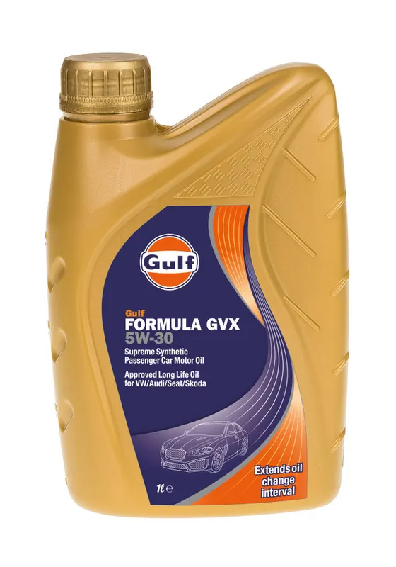 Opis produktu i zastosowanieGulf Formula GVX 5W-30 jest najnowszym niskoemisyjnym, całkowicie syntetycznym olejem silnikowym zapewniającym mniejsze zużycie paliwa. Został on stworzony specjalnie aby spełnić wymagania wszystkich samochodów osobowych firmy Volkswagen. Olej powstał ze starannie dobranych syntetycznych baz olejowych oraz wysoko zaawansowanych technologicznie dodatków spełniających wymagania SAPS tak, aby był w pełni kompatybilny z większością nowoczesnych Filtrów Cząstek Stałych silników diesla (DPF) oraz z Katalicznymi Dopalaczami Spalin w silnikach benzynowych. Pomaga przedłużyć żywotność silnika, oraz utrzymać efektowność układów oczyszczania spalin w najnowszej generacji samochodach benzynowych i diesla. Olej został stworzony aby zapewnić wyśmienite osiągi w połączeniu z oszczędnością paliwa i przedłużonymi okresami między wymianami oleju.Gulf Formula GVX 5W-30 jest zalecany do wszystkich silników benzynowych i diesla samochodów osobowych Volkswagena, włączając w to najnowsze pojazdy spełniające normy emisji spalin EURO4, które wymagają wysokiej klasy olei spełniających normy VW 504 00/ 507 00 przeznaczonych do długiej eksploatacji. Gulf Formula GVX 5W-30 jest szczególnie polecany dla najnowszej generacji samochodów osobowych i vanów o wysokoobrotowych silnikach benzynowych i diesla, wyposażonych w układy oczyszczania spalin takie jak: filtry cząstek stałych, katalityczne dopalacze spalin, zawory recyrkulacji spalin (EGR) wymagających wysokiej klasy olejów ACEA C3.