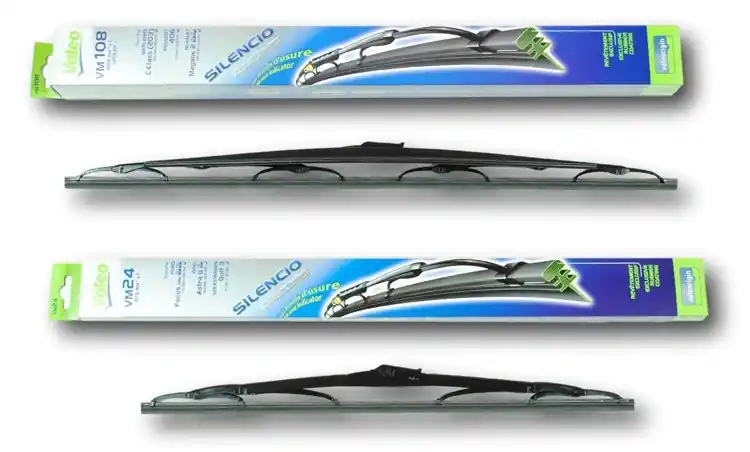 Nowe wycieraczki – zapakowane w oryginalne opakowanie producenta – cena zakupu dotyczy 1kompletu (strona kierowcy i pasażera).Wycieraczki Valeo Silencio na przednią szybę posiadają konstrukcję klasyczną i zbudowane są z metalowych przegubów. Specjalny skład gumy sprawia, że doskonale spisują się w każdych warunkach atmosferycznych. Guma posiada specjalne struktury(kanaliki) do rozprowadzania „płynu do spryskiwaczy” po całej powierzchni szyby. Ponadto guma wycieraczki pokryta została specjalną warstwą grafitu zapewniającą optymalne wycieranie szyby. Gama wycieraczek Valeo Silencio to najwyżej sklasyfikowana gama klasycznych wycieraczek firmy Valeo. Wycieraczki posiadają wskaźnik zużycia, który stopniowo zmienia kolor z czarnego na żółty, sygnalizując potrzebę ewentualnej ich wymiany. Od strony kierowcy wycieraczka wyposażona jest w spojler, zadaniem którego jest dociskanie wycieraczki do szyby przy dużych prędkościach samochodu.Wycieraczki montuje się bardzo szybko i sprawnie; obrazkowa instrukcja montażu znajduje się na ich opakowaniu.Zalety wycieraczek Valeo Silencio:- bardzo łatwy montaż- precyzyjne wycieranie szyby- najwyższa jakość wykonania oraz zastosowanych materiałówJak dbać o wycieraczki:- pamiętaj, aby dbać o gumę wycieraczki usuwając z niej brud, owady itp., które osiadły podczas jej pracy (wykorzystać można do tego łagodny detergent); zapominanie o usuwaniu zanieczyszczeń, może doprowadzić do uszkodzenia gumy wycieraczki- nigdy nie używaj wycieraczek, gdy szyba jest sucha; tarcie gumy po suchej szybie może doprowadzić do szybkiego jej zużycia- jeżeli wycieraczka na szybie podskakuje, może to być oznaką, że ramię wycieraczki jest skrzywione; w takim przypadku należy dokonać jego regulacji- jeżeli planujesz pozostawienie samochodu na słońcu przez kilka dni, ustaw wycieraczki tak, aby nie stykały się z szybą- po wizycie na myjni, pamiętaj, aby zawsze dokładnie oczyścić szybę, ponieważ znajdujący się na niej wosk, może powodować przeskakiwanie wycieraczki- pamiętaj również, aby nie uruchamiać wycieraczek na zamarzniętej szybie, może to bowiem doprowadzić do ich uszkodzenia lub oderwania gumy od mocowania.
