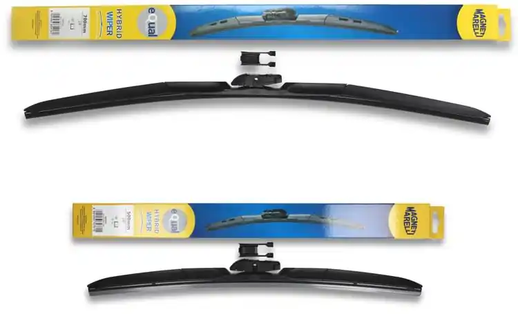 Wycieraczki są nowe – w oryginalnym opakowaniu producenta – cena zakupu dotyczy 1-kompletu (odpowiednio dobrane długości i modele wycieraczek – strona kierowcy oraz pasażera). Wycieraczki hybrydowe Magneti Marelli wyprodukowane są z materiałów o najwyższej jakości:- guma – to ponad 50% kauczuku naturalnego z grafitową powłoką. Wewnątrz gumy znajduje się podwójna stal nierdzewna. Sztywne gumowe pióro z grafitową powłoką w wycieraczkach hybrydowych Magneti Marelli to skuteczne i dokładne wycieranie powierzchni szyby.- Spojler – materiał ABS- Złącze – materiał POMWycieraczki hybrydowe Magneti Marelli dzięki zastosowaniu materiałów najwyższej jakości oraz zaawansowanej technologii, bez problemu zastępują tradycyjne wycieraczki. Wymiana wycieraczek jest łatwa i szybka.Wysokiej jakości materiał użyty w wycieraczkach hybrydowych Magneti Marelli sprawia, że są wytrzymałe, dobrze dopasowują się do powierzchni szyby, dzięki czemu ich praca jest cicha. Sprawdzają się również w niekorzystnych warunkach atmosferycznych; temperatura od – 25ºC do + 50ºC w żaden sposób nie zakłóca ich pracy.Wycieraczki hybrydowe Magneti Marelli pasują do większości modeli samochodów dzięki zastosowaniu jednego uniwersalnego adaptera, który może być montowany w czterech różnych wycieraczkach.Wycieraczki Magneti Marelli to jedne z bardziej poszukiwanych wycieraczek na świecie.