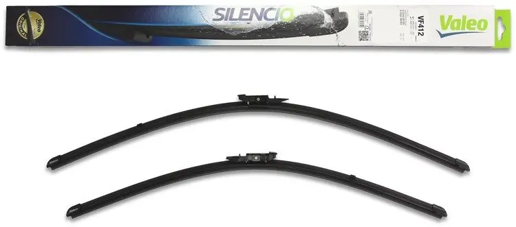 Nowe wycieraczki ;  zapakowane w oryginalne opakowanie producenta. Cena zakupu dotyczy 1kompletu (strona kierowcy i pasażera).Wycieraczki Valeo Silencio na przednią szybę mają  konstrukcję aerodynamiczną i nie posiadają klasycznych przegubów. Na całej ich długości znajduje się spojler, który ma za zadanie dociskać wycieraczkę do szyby, nawet przy dużych prędkościach. W konstrukcji wycieraczki zastosowano stalowe listwy, dzięki którym wycieraczka  dobrze przylega do szyby  ( regularnie rozłożona  siła  nacisku na całej długości pióra wycieraczki). Specjalny skład gumy sprawia, że doskonale spisują się one w każdych warunkach atmosferycznych; dodatkowo guma ta posiada specjalne struktury (kanaliki), które rozprowadzają płyn  do spryskiwaczy po całej szybie. Wycieraczki montuje siębardzo szybko i sprawnie; obrazkowa instrukcja montażu znajduje się na ichopakowaniu. Zalety wycieraczek Valeo Silencio:- precyzyjne wycieranie szyby- zmniejszenie szumu powietrza poprzez bardziej opływowy kształt- nie zamarzanie zimą poszczególnych elementów wycieraczki (jej konstrukcja składa się z 6-7 elementów)- nowoczesny wygląd- spojler na całej długości, poprawiający przyleganie wycieraczki do powierzchni szyby przy dużych  prędkościach.Jak dbać o wycieraczki:- pamiętaj, aby dbać o gumę wycieraczki usuwając z niej brud, owady itp., które osiadły podczas jej pracy (wykorzystać można do tego łagodny detergent); zapominanie o usuwaniu zanieczyszczeń, może doprowadzić do uszkodzenia gumy wycieraczki- nigdy nie używaj wycieraczek, gdy szyba jest sucha;  tarcie gumy po suchej szybie może doprowadzić do szybkiego jej zużycia- jeżeli wycieraczka na szybie podskakuje, może to być oznaką, że ramię wycieraczki jest skrzywione; w takim przypadku należy dokonać jego regulacji- jeżeli planujesz pozostawienie samochodu  na słońcu przez kilka dni, ustaw wycieraczki tak, aby nie stykały się z szybą- po wizycie na myjni, pamiętaj, aby zawsze dokładnie oczyścić szybę, ponieważ znajdujący się na niej wosk, może powodować przeskakiwanie wycieraczki- pamiętaj również, aby nie uruchamiać wycieraczek na zamarzniętej szybie; może to bowiem doprowadzić do ich uszkodzenia lub oderwania gumy od mocowania.