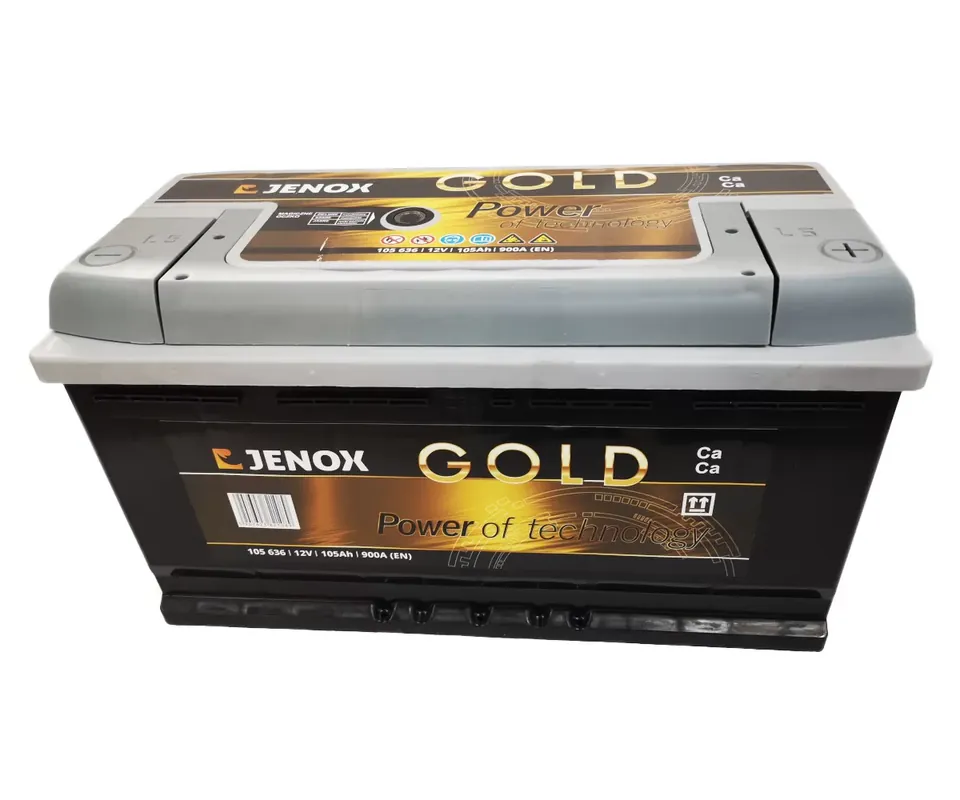 Akumulatory Jenox to połączenie optymalnych parametrów technicznych, skonfigurowanych zmyślą owszystkich typach pojazdów zbezpieczeństwem iergonomią użytkowania przy równoczesnym zachowaniu wyjątkowo korzystnej relacji ceny do jakości. Akumulatory serii JENOX Gold to bezobsługowe akumulatory oniskim poziomie samowyładowania idodatkowej mocy rozruchowej. Te niezawodne iergonomiczne wużyciu akumulatory zalecane są do większości nowoczesnych pojazdów. Wszystkie produkty serii Gold objęte są 2-letnim okresem gwarancyjnym. Dane techniczne: – Napięcie: 12V – Pojemność: 105Ah – Prąd rozruchu: 900A – Długość: 352mm – Szerokość: 175mm – Wysokość: 190mm – Biegunowość: P+