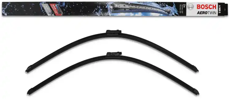 Nowe wycieraczki – zapakowane w oryginalne opakowanie producenta – cena zakupu dotyczy 1kompletu (strona kierowcy i pasażera).Wycieraczki Bosch Aerotwin posiadają aerodynamiczną konstrukcję i nie mają klasycznych przegubów. W ich wnętrzu znajduje się specjalna szyna stabilizująca Evodium, która odpowiada za przyleganie do szyby i sztywność wycieraczki. Do konstrukcji pióra wycieraczki zastosowano 2 rodzaje gumy. Na górze znajduje się część miękka odpowiadająca za cichą pracę, natomiast na dole twarda, która ma za zadanie precyzyjne czyszczenie szyby ze śniegu, wody itp. Dodatkowo pokryta jest specjalną powłoką, powodującą lepszy poślizg na szybie, aby siła tarcia była jak najmniejsza. Wycieraczki Bosch Aerotwin spełniają swoją rolę nawet przy dużych prędkościach dzięki spojlerowi  wbudowanemu na całej długości wycieraczki, który sprawia, że pęd powietrza dociska wycieraczkę do szyby.Zalety wycieraczek Bosch Aerotwin:- precyzyjne wycieranie szyby- zmniejszenie szumu powietrza poprzez bardziej opływowy kształt- nie zamarzanie zimą poszczególnych elementów wycieraczki dzięki zastosowaniu wewnętrznej szyny Evodium- nowoczesny wygląd- spojler wmontowany na całej długości, poprawiający przyleganie wycieraczki do szyby przy dużych prędkościach.Jak dbać o wycieraczki:- pamiętaj, aby dbać o gumę wycieraczki usuwając z niej brud, owady itp., które osiadły podczas jej pracy (wykorzystać można do tego łagodny detergent); zapominanie o usuwaniu zanieczyszczeń, może doprowadzić do uszkodzenia gumy wycieraczki- nigdy nie używaj wycieraczek, gdy szyba jest sucha;  tarcie gumy po suchej szybie może doprowadzić do szybkiego jej zużycia- jeżeli wycieraczka na szybie podskakuje, może to być oznaką, że ramię wycieraczki jest skrzywione; w takim przypadku należy dokonać jego regulacji- jeżeli planujesz pozostawienie samochodu na słońcu przez kilka dni, ustaw wycieraczki tak, aby nie stykały się z szybą- po wizycie na myjni, pamiętaj, aby zawsze dokładnie oczyścić szybę, ponieważ znajdujący się na niej wosk, może powodować przeskakiwanie wycieraczki- pamiętaj również, aby nie uruchamiać wycieraczek na zamarzniętej szybie; może to bowiem doprowadzić do ich uszkodzenia lub oderwania gumy od mocowania.Czy wiesz że:- pierwsza wycieraczka wprowadzona została przez Boscha w okresie międzywojennym w 1926r. i napędzana była silnikiem elektrycznym- pierwszą wycieraczkę bezprzegubową – Bosch wprowadził do produkcji w 1999r.- 750 000 cykli oczyszczania! Tak wycieraczki Bosch są testowane pod kątem wytrzymałości mechanicznej- wycieraczki Bosch są przystosowane do pracy w temperaturach od -30 do +80 stopni Celsjusza.