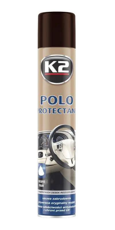 Opis produktu i zastosowanieK2 POLO PROTECTANT to bardzo wydajna pianka do pielęgnacji elementów z tworzywa sztucznego o przyjemnym zapachu. Nadaje się do wszystkich rodzajów desek rozdzielczych, w tym matowych. Przywraca oryginalny wygląd. Działa antystatycznie, zapobiega osadzaniu się kurzu. Odświeża wnętrze auta. Chroni przed promieniowaniem UV.