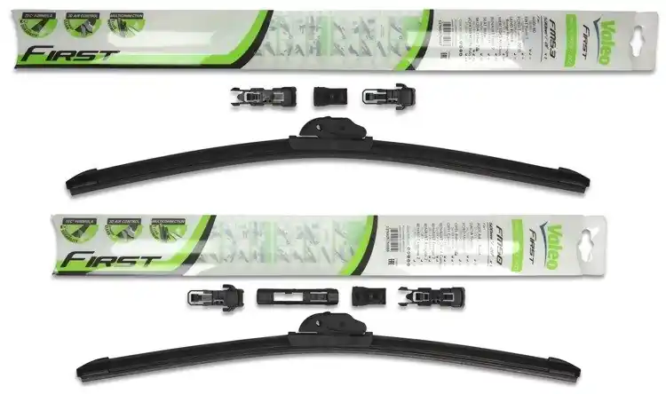Nowe wycieraczki; zapakowane w oryginalne opakowanie producenta. Cena zakupu dotyczy 1kompletu (strona kierowcy i pasażera).Wycieraczki Valeo First Multiconnection to wysoka jakość i atrakcyjna cena.Bezszkieletowe wycieraczki Valeo First posiadają metalowe listwy, które zapewniają optymalny docisk do powierzchni szyby, a tym samym doskonałą widoczność nawet w niekorzystnych warunkach atmosferycznych.Gumowe pióra wycieraczek wykonane są ze specjalnej mieszanki obrabianego kauczuku, co znacznie poprawia skuteczność czyszczenia powierzchni szyby.Innowacyjny kształt spojlera w technologii „PYRAMID” zapewnia optymalny docisk do powierzchni szyby oraz cichą pracę nawet przy dużych prędkościach.Na opakowaniu wycieraczek First Multiconnection podany jest sposób ich montażu oraz przykładowa lista zastosowań.Wycieraczki First zostały zaprojektowane i wyprodukowane na całkowicie zautomatyzowanych liniach montażowych w nowych fabrykach Valeo.W opakowaniu wycieraczek First Multiconnection znajduje się kilka adapterów. Klient samodzielnie wybiera i montuje właściwy adapter. Zalety wycieraczek Valeo First Multiconnection:- bardzo łatwy montaż- precyzyjne wycieranie szyby- zmniejszenie szumu powietrza poprzez bardziej opływowy kształt- nie zamarzanie zimą poszczególnych elementów wycieraczki- nowoczesny wygląd- spojler na całej długości, poprawiający przyleganie wycieraczki do powierzchni szyby przy dużych  prędkościach.Jak dbać o wycieraczki:- pamiętaj, aby dbać o gumę wycieraczki usuwając z niej brud, owady itp., które osiadły podczas jej pracy (wykorzystać można do tego łagodny detergent); zapominanie o usuwaniu zanieczyszczeń, może doprowadzić do uszkodzenia gumy wycieraczki- nigdy nie używaj wycieraczek, gdy szyba jest sucha;  tarcie gumy po suchej szybie może doprowadzić do szybkiego jej zużycia- jeżeli wycieraczka na szybie podskakuje, może to być oznaką, że ramię wycieraczki jest skrzywione; w takim przypadku należy dokonać jego regulacji- jeżeli planujesz pozostawienie samochodu  na słońcu przez kilka dni, ustaw wycieraczki tak, aby nie stykały się z szybą- po wizycie na myjni, pamiętaj, aby zawsze dokładnie oczyścić szybę, ponieważ znajdujący się na niej wosk, może powodować przeskakiwanie wycieraczki- pamiętaj również, aby nie uruchamiać wycieraczek na zamarzniętej szybie; może to bowiem doprowadzić do ich uszkodzenia lub oderwania gumy od mocowania.