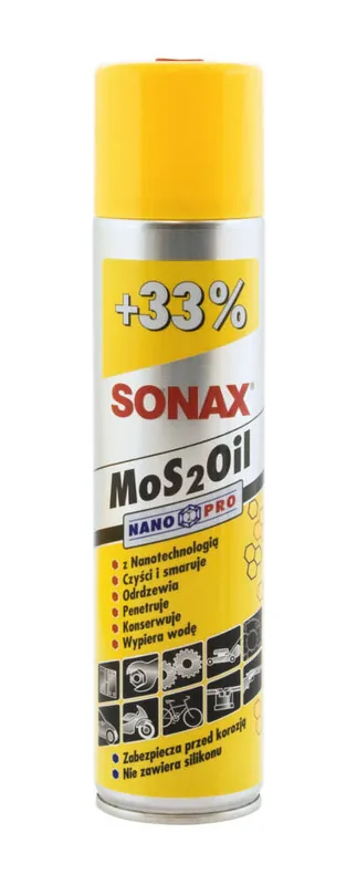 Opis produktu i zastosowanieUniwersalny olej smarujący z dodatkiem dwusiarczku molibdenu. Doskonale nadaje się do poluzowywania silnie zapieczonych i zardzewiałych śrub, nakrętek i sworzni ułatwiając ich odkręcenie. Likwiduje piski i smaruje wszystkie ruchome elementy. Skutecznie zabezpiecza powierzchnie metaliczne przed korozją. Wypiera wilgoć oraz zapobiega prądom upływowym w instalacji elektrycznej i poprawia kontakt elektryczny. Rozpuszcza smołę, smary i resztki kleju.