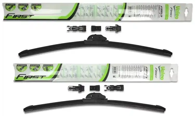 Nowe wycieraczki;zapakowane w oryginalne opakowanie producenta. Cena zakupu dotyczy 1kompletu (strona kierowcy i pasażera).Wycieraczki Valeo First Multiconnection to wysoka jakość i atrakcyjna cena.Bezszkieletowe wycieraczki Valeo First posiadają metalowe listwy, które zapewniają optymalny docisk do powierzchni szyby, a tym samym doskonałą widoczność nawet w niekorzystnych warunkach atmosferycznych.Gumowe pióra wycieraczek wykonane są ze specjalnej mieszanki obrabianego kauczuku, co znacznie poprawia skuteczność czyszczenia powierzchni szyby.Innowacyjny kształt spojlera w technologii „PYRAMID” zapewnia optymalny docisk do powierzchni szyby oraz cichą pracę nawet przy dużych prędkościach.Na opakowaniu wycieraczek First Multiconnection podany jest sposób ich montażu oraz przykładowa lista zastosowań.Wycieraczki First zostały zaprojektowane i wyprodukowane na całkowicie zautomatyzowanych liniach montażowych w nowych fabrykach Valeo.W opakowaniu wycieraczek First Multiconnection znajduje się kilka adapterów. Klient samodzielnie wybiera i montuje właściwy adapter.Zalety wycieraczek ValeoFirst Multiconnection:- bardzo łatwy montaż – precyzyjne wycieranie szyby- zmniejszenie szumu powietrza poprzez bardziej opływowy kształt- nie zamarzanie zimą poszczególnych elementów wycieraczki- nowoczesny wygląd- spojler na całej długości, poprawiający przyleganie wycieraczki do powierzchni szyby przy dużych prędkościach.Jak dbać o wycieraczki:- pamiętaj, aby dbać o gumę wycieraczki usuwając z niej brud, owady itp., które osiadły podczas jej pracy (wykorzystać można do tego łagodny detergent); zapominanie o usuwaniu zanieczyszczeń, może doprowadzić do uszkodzenia gumy wycieraczki- nigdy nie używaj wycieraczek, gdy szyba jest sucha; tarcie gumy po suchej szybie może doprowadzić do szybkiego jej zużycia- jeżeli wycieraczka na szybie podskakuje, może to być oznaką, że ramię wycieraczki jest skrzywione; w takim przypadku należy dokonać jego regulacji- jeżeli planujesz pozostawienie samochodu na słońcu przez kilka dni, ustaw wycieraczki tak, aby nie stykały się z szybą- po wizycie na myjni, pamiętaj, aby zawsze dokładnie oczyścić szybę, ponieważ znajdujący się na niej wosk, może powodować przeskakiwanie wycieraczki- pamiętaj również, aby nie uruchamiać wycieraczek na zamarzniętej szybie; może to bowiem doprowadzić do ich uszkodzenia lub oderwania gumy od mocowania.