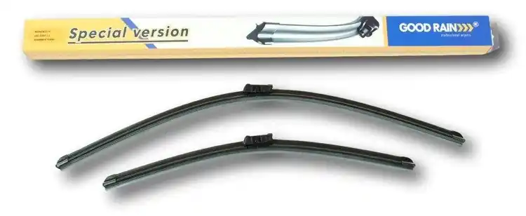 Nowe wycieraczki ;  zapakowane woryginalne opakowanie producenta. Cena zakupu dotyczy 1kompletu (stronakierowcy i pasażera).Wycieraczki Good Rain na przednią szybęsamochodu posiadają  konstrukcję bezprzegubową. Guma w wycieraczkachpokryta jest specjalną powłoką, dzięki, której szyba jest bardzo dobrzeczyszczona. Na całej długości wycieraczki znajduje się spojler, któregozadaniem jest dociskanie jej do powierzchni szyby, nawet przy dużychprędkościach. Duży wpływ na dobre przyleganie wycieraczek do szyby samochodu marównież zastosowana w ich konstrukcji specjalna prowadnica, dzięki, której siłanacisku jest  regularnie rozłożona na całej długości pióra wycieraczki. Stałynadzór nad  procesem  produkcji oraz wysokiej jakości produkty użytedo ich wykonania sprawiają , że wycieraczki te, profesjonalnie spisują się wkażdych warunkach atmosferycznych.   Zalety wycieraczek Good Rain:- bardzo łatwy montażna ramiona- wysoka jakość za przystępną cenę- skuteczne wycieranie szyby- zmniejszenie szumu powietrza poprzez bardziejopływowy kształt- zaawansowana technologia i nowoczesnywyglądJak dbać o wycieraczki:- pamiętaj, aby dbać o gumę wycieraczkiusuwając z niej brud, owady itp., które osiadły podczas jej pracy (wykorzystaćmożna do tego łagodny detergent); zapominanie o usuwaniu zanieczyszczeń, możedoprowadzić do uszkodzenia gumy wycieraczki- nigdy nie używaj wycieraczek, gdyszyba jest sucha;  tarcie gumy po suchej szybie może doprowadzić doszybkiego jej zużycia- jeżeli wycieraczka na szybiepodskakuje, może to być oznaką, że ramię wycieraczki jest skrzywione; w takimprzypadku należy dokonać jego regulacji- jeżeli planujesz pozostawieniesamochodu  na słońcu przez kilka dni, ustaw wycieraczki tak, aby niestykały się z szybą- po wizycie na myjni, pamiętaj, abyzawsze dokładnie oczyścić szybę, ponieważ znajdujący się na niej wosk, możepowodować przeskakiwanie wycieraczki- pamiętaj również,aby nie uruchamiać wycieraczek  na zamarzniętej szybie; może to bowiemdoprowadzić do ich uszkodzenia lub oderwania gumy od mocowania.