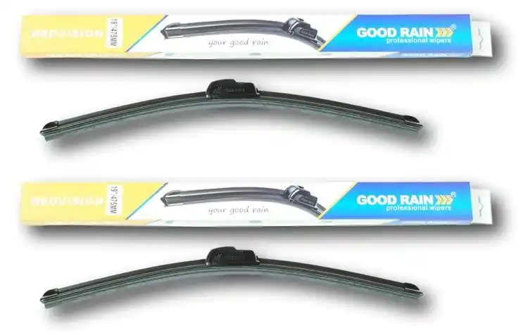 Nowe wycieraczki ;  zapakowane woryginalne opakowanie producenta. Cena zakupu dotyczy 1kompletu (stronakierowcy i pasażera).Wycieraczki Good Rain na przednią szybęsamochodu posiadają  konstrukcję bezprzegubową. Guma w wycieraczkachpokryta jest specjalną powłoką, dzięki, której szyba jest bardzo dobrzeczyszczona. Na całej długości wycieraczki znajduje się spojler, któregozadaniem jest dociskanie jej do powierzchni szyby, nawet przy dużychprędkościach. Duży wpływ na dobre przyleganie wycieraczek do szyby samochodu marównież zastosowana w ich konstrukcji specjalna prowadnica, dzięki, której siłanacisku jest  regularnie rozłożona na całej długości pióra wycieraczki. Stałynadzór nad  procesem  produkcji oraz wysokiej jakości produkty użytedo ich wykonania sprawiają , że wycieraczki te, profesjonalnie spisują się wkażdych warunkach atmosferycznych.   Zalety wycieraczek Good Rain:- bardzo łatwy montażna ramiona- wysoka jakość za przystępną cenę- skuteczne wycieranie szyby- zmniejszenie szumu powietrza poprzez bardziejopływowy kształt- zaawansowana technologia i nowoczesnywyglądJak dbać o wycieraczki:- pamiętaj, aby dbać o gumę wycieraczkiusuwając z niej brud, owady itp., które osiadły podczas jej pracy (wykorzystaćmożna do tego łagodny detergent); zapominanie o usuwaniu zanieczyszczeń, możedoprowadzić do uszkodzenia gumy wycieraczki- nigdy nie używaj wycieraczek, gdyszyba jest sucha;  tarcie gumy po suchej szybie może doprowadzić doszybkiego jej zużycia- jeżeli wycieraczka na szybiepodskakuje, może to być oznaką, że ramię wycieraczki jest skrzywione; w takimprzypadku należy dokonać jego regulacji- jeżeli planujesz pozostawieniesamochodu  na słońcu przez kilka dni, ustaw wycieraczki tak, aby niestykały się z szybą- po wizycie na myjni, pamiętaj, abyzawsze dokładnie oczyścić szybę, ponieważ znajdujący się na niej wosk, możepowodować przeskakiwanie wycieraczki- pamiętaj również,aby nie uruchamiać wycieraczek  na zamarzniętej szybie; może to bowiemdoprowadzić do ich uszkodzenia lub oderwania gumy od mocowania.