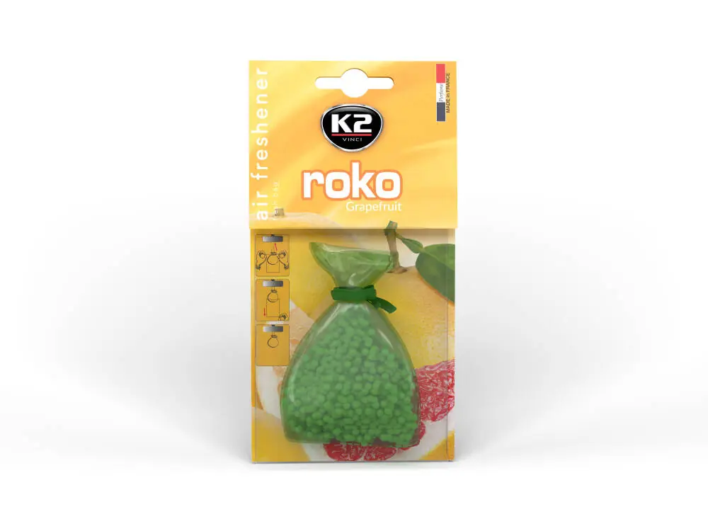Opis produktu i zastosowanieK2 ROKO to wyrafinowany odświeżacz powietrza w woreczku wyprodukowany na bazie oryginalnych francuskich perfum. Ażurowy woreczek z kamyczkami ozdobi każde wnętrze auta. Dzięki technologii AROMATYZUJĄCEJ – HYBRID SCENT stopniowo uwalniają idealny zapach, utrzymujący się nawet do 6 tygodni.Odświeżacze powietrza w woreczku K2 ROKO dzięki swojemu designowi śmiało mogą być zastosowane w biurze lub domowej garderobie.