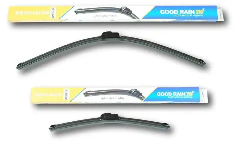 Nowe wycieraczki ;  zapakowane woryginalne opakowanie producenta. Cena zakupu dotyczy 1kompletu (stronakierowcy i pasażera).Wycieraczki Good Rain na przednią szybęsamochodu posiadają  konstrukcję bezprzegubową. Guma w wycieraczkachpokryta jest specjalną powłoką, dzięki, której szyba jest bardzo dobrzeczyszczona. Na całej długości wycieraczki znajduje się spojler, któregozadaniem jest dociskanie jej do powierzchni szyby, nawet przy dużychprędkościach. Duży wpływ na dobre przyleganie wycieraczek do szyby samochodu marównież zastosowana w ich konstrukcji specjalna prowadnica, dzięki, której siłanacisku jest  regularnie rozłożona na całej długości pióra wycieraczki. Stałynadzór nad  procesem  produkcji oraz wysokiej jakości produkty użytedo ich wykonania sprawiają , że wycieraczki te, profesjonalnie spisują się wkażdych warunkach atmosferycznych.   Zalety wycieraczek Good Rain:- bardzo łatwy montażna ramiona- wysoka jakość za przystępną cenę- skuteczne wycieranie szyby- zmniejszenie szumu powietrza poprzez bardziejopływowy kształt- zaawansowana technologia i nowoczesnywyglądJak dbać o wycieraczki:- pamiętaj, aby dbać o gumę wycieraczkiusuwając z niej brud, owady itp., które osiadły podczas jej pracy (wykorzystaćmożna do tego łagodny detergent); zapominanie o usuwaniu zanieczyszczeń, możedoprowadzić do uszkodzenia gumy wycieraczki- nigdy nie używaj wycieraczek, gdyszyba jest sucha;  tarcie gumy po suchej szybie może doprowadzić doszybkiego jej zużycia- jeżeli wycieraczka na szybiepodskakuje, może to być oznaką, że ramię wycieraczki jest skrzywione; w takimprzypadku należy dokonać jego regulacji- jeżeli planujesz pozostawieniesamochodu  na słońcu przez kilka dni, ustaw wycieraczki tak, aby niestykały się z szybą- po wizycie na myjni, pamiętaj, abyzawsze dokładnie oczyścić szybę, ponieważ znajdujący się na niej wosk, możepowodować przeskakiwanie wycieraczki- pamiętaj również,aby nie uruchamiać wycieraczek  na zamarzniętej szybie; może to bowiemdoprowadzić do ich uszkodzenia lub oderwania gumy od mocowania.