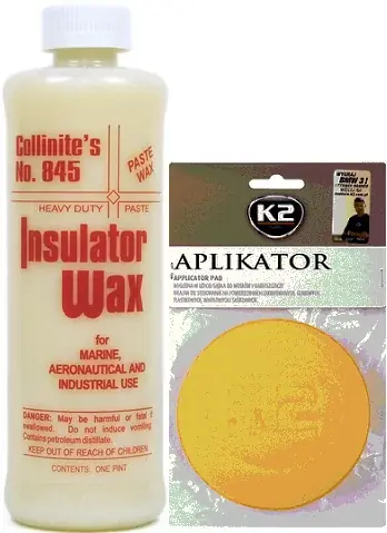 Jego podstawowym zastosowaniem są lakiery samochodów osobowych iciężarowych, autobusów isamolotów, dlaktórych trwałość, wysoki połysk iochrona są najważniejsze. Idealny do szybkiej aplikacji ibardzo łatwy wużyciu. Bezpieczny dlalakierów bezbarwnych. Sposób użycia: 1. COLLINITE Insulator Wax przeznaczony jest do aplikacji ręcznej. 2. Dla uzyskania najlepszych rezultatów nakładać cienką warstwę za pomocą piankowego aplikatora na uprzednio oczyszczony lakier. 3. Pozostawić do wyschnięcia na 5-10 min. 4. Wypolerować za pomocą ręcznika zmikrofibry. Wygodna wużyciu gąbka do wosków inabłyszczaczy idealna do stosowania na powierzchniach lakierowanych, gumowych, plastikowych, winylowych iskórzanych. Idealna do nakładania wosków inabłyszczaczy oróżnej konsystencji. Wymiary aplikatora: – średnica 10cm – grubość 2cm