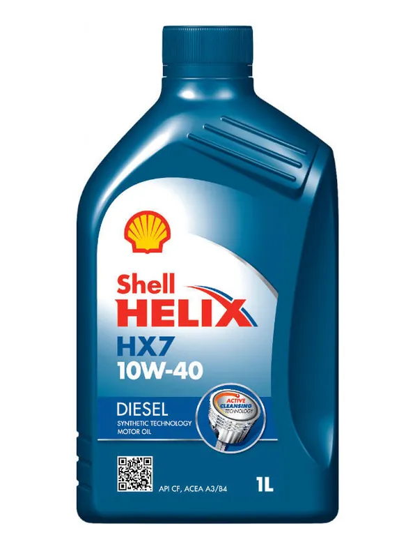 Opis produktuShell Helix Diesel HX7 10W-40 to olej silnikowy posiadający w swojej formulacji nowoczesne dodatki detergentowe. Ta zaawansowana technologia pozwala na dokładne i lepsze zabezpieczenie silnika przez powstawaniem osadów i szlamów w porównaniu ze standardowymi olejami silnikowymi. Doskonałe osiągi silnika, aż do następnej wymiany oleju.ZastosowanieTurbo-doładowane jednostki Diesla z układem bezpośredniego wtrysku oraz chłodnicą dolotu powietrza i systemem recyrkulacji „blow-by”.Właściwości i korzyściTechnologia dodatków detergentowych. Dwa razy efektywniejsze usuwanie osadów szlamów i laków z wnętrza silnika w porównaniu do standardowego oleju mineralnego.Dobra stabilność oksydacyjna. Do 19% lepsza odporność na utlenianie w porównaniu do innych olejów produkowanych w technologii syntetycznej.Niska lepkość, szybka płynność, niskie tarcie. Duża sprawność silnika.Odporność na ścinanie. Odpowiednia wartość lepkości kinematycznej oleju pozostaje na odpowiednim poziomie przez cały okres użytkowania do następnej wymiany.Wysoka jakość syntetycznej bazy olejowej. Znaczne zmniejszenie odparowalności oleju zmniejsza jego konsumpcję w trakcie użytkowania.Minimalizacja wibracji i wyciszenie pracy silnika. Cicha i stabilna praca silnika.