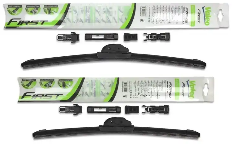 Nowe wycieraczki; zapakowane w oryginalne opakowanie producenta. Cena zakupu dotyczy 1kompletu (strona kierowcy i pasażera).Wycieraczki Valeo First Multiconnection to wysoka jakość i atrakcyjna cena.Bezszkieletowe wycieraczki Valeo First posiadają metalowe listwy, które zapewniają optymalny docisk do powierzchni szyby, a tym samym doskonałą widoczność nawet w niekorzystnych warunkach atmosferycznych.Gumowe pióra wycieraczek wykonane są ze specjalnej mieszanki obrabianego kauczuku, co znacznie poprawia skuteczność czyszczenia powierzchni szyby.Innowacyjny kształt spojlera w technologii „PYRAMID” zapewnia optymalny docisk do powierzchni szyby oraz cichą pracę nawet przy dużych prędkościach.Na opakowaniu wycieraczek First Multiconnection podany jest sposób ich montażu oraz przykładowa lista zastosowań.Wycieraczki First zostały zaprojektowane i wyprodukowane na całkowicie zautomatyzowanych liniach montażowych w nowych fabrykach Valeo.W opakowaniu wycieraczek First Multiconnection znajduje się kilka adapterów. Klient samodzielnie wybiera i montuje właściwy adapter. Zalety wycieraczek Valeo First Multiconnection:- bardzo łatwy montaż- precyzyjne wycieranie szyby- zmniejszenie szumu powietrza poprzez bardziej opływowy kształt- nie zamarzanie zimą poszczególnych elementów wycieraczki- nowoczesny wygląd- spojler na całej długości, poprawiający przyleganie wycieraczki do powierzchni szyby przy dużych  prędkościach.Jak dbać o wycieraczki:- pamiętaj, aby dbać o gumę wycieraczki usuwając z niej brud, owady itp., które osiadły podczas jej pracy (wykorzystać można do tego łagodny detergent); zapominanie o usuwaniu zanieczyszczeń, może doprowadzić do uszkodzenia gumy wycieraczki- nigdy nie używaj wycieraczek, gdy szyba jest sucha;  tarcie gumy po suchej szybie może doprowadzić do szybkiego jej zużycia- jeżeli wycieraczka na szybie podskakuje, może to być oznaką, że ramię wycieraczki jest skrzywione; w takim przypadku należy dokonać jego regulacji- jeżeli planujesz pozostawienie samochodu  na słońcu przez kilka dni, ustaw wycieraczki tak, aby nie stykały się z szybą- po wizycie na myjni, pamiętaj, aby zawsze dokładnie oczyścić szybę, ponieważ znajdujący się na niej wosk, może powodować przeskakiwanie wycieraczki- pamiętaj również, aby nie uruchamiać wycieraczek na zamarzniętej szybie; może to bowiem doprowadzić do ich uszkodzenia lub oderwania gumy od mocowania.