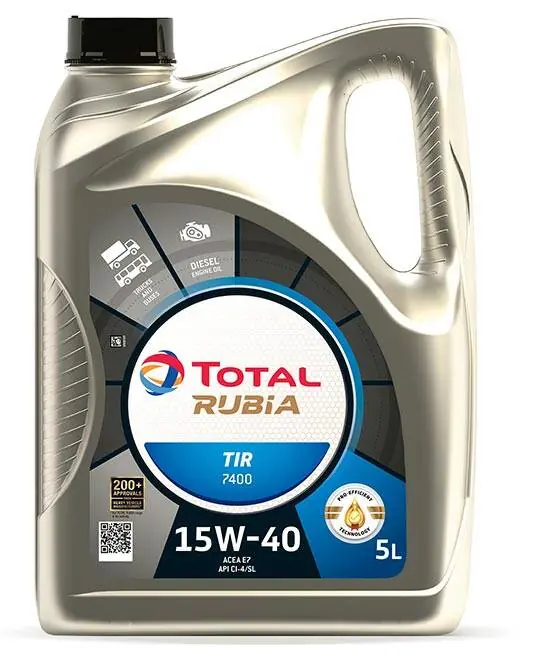 Opis produktu i zastosowanieOlej silnikowy przystosowany do smarowania silników Euro 3 i starszych. Posiada właściwości myjąco-dyspergujące oraz przeciwzużyciowe, dzięki czemu utrzymuje silnik w czystości i sprawności.Jest rekomendowany do silników spełniających normy Euro 3 i wcześniejsze większości producentów europejskich i amerykańskich. Jest również przystosowany do silników Euro 5 i poprzednich niektórych producentów przy zachowaniu odpowiednich okresów między wymianami oleju.TOTAL RUBIA TIR 7400 15W-40 umożliwia pokrycie wymagań floty mieszanych marek (amerykańskich i europejskich producentów) przy minimalnej liczbie produktów.TOTAL RUBIA TIR 7400 15W-40 zachowuje doskonałą stabilność lepkości podczas użytkowania, gwarantuje efektywne smarowanie silnika w ciężkich warunkach.Znakomite detergenty, dodatki dyspersyjne i przeciwzużyciowe utrzymują czystość silnika i umożliwiają efektywną kontrolę nad osadami sadzy, szlamami i osadami na tłokach. Doskonałe właściwości czyszczące tłoki zapewniają efektywną ochronę gładzi cylindrowej.