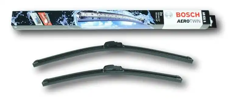 Nowe wycieraczki – zapakowane w oryginalne opakowanie producenta – cena zakupu dotyczy 1kompletu (strona kierowcy i pasażera).Wycieraczki Bosch Aerotwin posiadają konstrukcję aerodynamiczną i nie mają klasycznych przegubów. W ich wnętrzu znajduje się specjalna szyna stabilizująca Evodium, która odpowiada za przyleganie do szyby i sztywność wycieraczki. Do konstrukcji pióra wycieraczki zastosowano 2 rodzaje gumy. Na górze znajduje się część miękka odpowiadająca za cichą pracę, natomiast na dole twarda, która ma za zadanie precyzyjne czyszczenie szyby ze śniegu, wody itp. Dodatkowo pokryta jest specjalną powłoką, powodującą lepszy poślizg na szybie, aby siła tarcia była jak najmniejsza. Wycieraczki Bosch Aerotwin spełniają swoją rolę nawet przy dużych prędkościach dzięki spojlerowi wbudowanemu na całej długości wycieraczki, który sprawia, że pęd powietrza dociska wycieraczkę do szyby.Zalety wycieraczek Bosch Aerotwin:- bardzo łatwy montaż na ramiona typu „U”- precyzyjne wycieranie szyby- zmniejszenie szumu powietrza poprzez bardziej opływowy kształt- nie zamarzanie zimą poszczególnych elementów wycieraczki dzięki zastosowaniu wewnętrznej szyny Evodium- nowoczesny wygląd- spojler wmontowany na całej długości, poprawiający przyleganie wycieraczki do szyby przy dużych prędkościach.Jak dbać o wycieraczki:- pamiętaj, aby dbać o gumę wycieraczki usuwając z niej brud, owady itp., które osiadły podczas jej pracy (wykorzystać można do tego łagodny detergent); zapominanie o usuwaniu zanieczyszczeń, może doprowadzić do uszkodzenia gumy wycieraczki- nigdy nie używaj wycieraczek, gdy szyba jest sucha;  tarcie gumy po suchej szybie może doprowadzić do szybkiego jej zużycia- jeżeli wycieraczka na szybie podskakuje, może to być oznaką, że ramię wycieraczki jest skrzywione; w takim przypadku należy dokonać jego regulacji- jeżeli planujesz pozostawienie samochodu na słońcu przez kilka dni, ustaw wycieraczki tak, aby nie stykały się z szybą- po wizycie na myjni, pamiętaj, aby zawsze dokładnie oczyścić szybę, ponieważ znajdujący się na niej wosk, może powodować przeskakiwanie wycieraczki- pamiętaj również, aby nie uruchamiać wycieraczek na zamarzniętej szybie; może to bowiem doprowadzić do ich uszkodzenia lub oderwania gumy od mocowania.Czy wiesz że:- pierwsza wycieraczka wprowadzona została przez Boscha w okresie międzywojennym w 1926r. i napędzana była silnikiem elektrycznym- pierwszą wycieraczkę bezprzegubową – Bosch wprowadził do produkcji w 1999r.- 750 000 cykli oczyszczania! Tak wycieraczki Bosch są testowane pod kątem wytrzymałości mechanicznej- wycieraczki Bosch są przystosowane do pracy w temperaturach od -30 do +80 stopni Celsjusza.