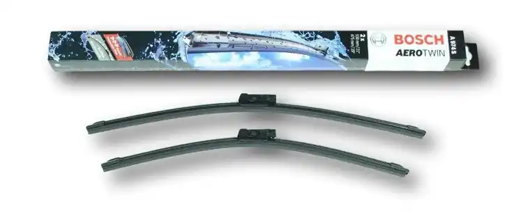 Nowe wycieraczki – zapakowane w oryginalne opakowanie producenta – cena zakupu dotyczy 1kompletu (strona kierowcy i pasażera).Wycieraczki Bosch Aerotwin posiadają aerodynamiczną konstrukcję i nie mają klasycznych przegubów. W ich wnętrzu znajduje się specjalna szyna stabilizująca Evodium, która odpowiada za przyleganie do szyby i sztywność wycieraczki. Do konstrukcji pióra wycieraczki zastosowano 2 rodzaje gumy. Na górze znajduje się część miękka odpowiadająca za cichą pracę, natomiast na dole twarda, która ma za zadanie precyzyjne czyszczenie szyby ze śniegu, wody itp. Dodatkowo pokryta jest specjalną powłoką, powodującą lepszy poślizg na szybie, aby siła tarcia była jak najmniejsza. Wycieraczki Bosch Aerotwin spełniają swoją rolę nawet przy dużych prędkościach dzięki spojlerowi  wbudowanemu na całej długości wycieraczki, który sprawia, że pęd powietrza dociska wycieraczkę do szyby.Zalety wycieraczek Bosch Aerotwin:- precyzyjne wycieranie szyby- zmniejszenie szumu powietrza poprzez bardziej opływowy kształt- nie zamarzanie zimą poszczególnych elementów wycieraczki dzięki zastosowaniu wewnętrznej szyny Evodium- nowoczesny wygląd- spojler wmontowany na całej długości, poprawiający przyleganie wycieraczki do szyby przy dużych prędkościach.Jak dbać o wycieraczki:- pamiętaj, aby dbać o gumę wycieraczki usuwając z niej brud, owady itp., które osiadły podczas jej pracy (wykorzystać można do tego łagodny detergent); zapominanie o usuwaniu zanieczyszczeń, może doprowadzić do uszkodzenia gumy wycieraczki- nigdy nie używaj wycieraczek, gdy szyba jest sucha;  tarcie gumy po suchej szybie może doprowadzić do szybkiego jej zużycia- jeżeli wycieraczka na szybie podskakuje, może to być oznaką, że ramię wycieraczki jest skrzywione; w takim przypadku należy dokonać jego regulacji- jeżeli planujesz pozostawienie samochodu na słońcu przez kilka dni, ustaw wycieraczki tak, aby nie stykały się z szybą- po wizycie na myjni, pamiętaj, aby zawsze dokładnie oczyścić szybę, ponieważ znajdujący się na niej wosk, może powodować przeskakiwanie wycieraczki- pamiętaj również, aby nie uruchamiać wycieraczek na zamarzniętej szybie; może to bowiem doprowadzić do ich uszkodzenia lub oderwania gumy od mocowania.Czy wiesz że:- pierwsza wycieraczka wprowadzona została przez Boscha w okresie międzywojennym w 1926r. i napędzana była silnikiem elektrycznym- pierwszą wycieraczkę bezprzegubową – Bosch wprowadził do produkcji w 1999r.- 750 000 cykli oczyszczania! Tak wycieraczki Bosch są testowane pod kątem wytrzymałości mechanicznej- wycieraczki Bosch są przystosowane do pracy w temperaturach od -30 do +80 stopni Celsjusza.