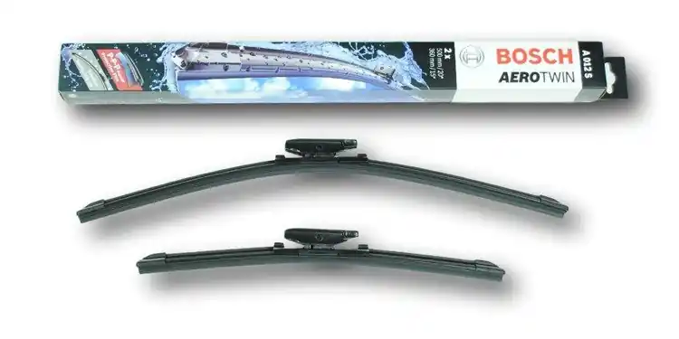 Nowe wycieraczki – zapakowane w oryginalne opakowanie producenta – cena zakupu dotyczy 1kompletu (strona kierowcy i pasażera).Wycieraczki Bosch Aerotwin posiadają aerodynamiczną konstrukcję i nie mają klasycznych przegubów. W ich wnętrzu znajduje się specjalna szyna stabilizująca Evodium, która odpowiada za przyleganie do szyby i sztywność wycieraczki. Do konstrukcji pióra wycieraczki zastosowano 2 rodzaje gumy. Na górze znajduje się część miękka odpowiadająca za cichą pracę, natomiast na dole twarda, która ma za zadanie precyzyjne czyszczenie szyby ze śniegu, wody itp. Dodatkowo pokryta jest specjalną powłoką, powodującą lepszy poślizg na szybie, aby siła tarcia była jak najmniejsza. Wycieraczki Bosch Aerotwin spełniają swoją rolę nawet przy dużych prędkościach dzięki spojlerowi  wbudowanemu na całej długości wycieraczki, który sprawia, że pęd powietrza dociska wycieraczkę do szyby.Zalety wycieraczek Bosch Aerotwin:- precyzyjne wycieranie szyby- zmniejszenie szumu powietrza poprzez bardziej opływowy kształt- nie zamarzanie zimą poszczególnych elementów wycieraczki dzięki zastosowaniu wewnętrznej szyny Evodium- nowoczesny wygląd- spojler wmontowany na całej długości, poprawiający przyleganie wycieraczki do szyby przy dużych prędkościach.Jak dbać o wycieraczki:- pamiętaj, aby dbać o gumę wycieraczki usuwając z niej brud, owady itp., które osiadły podczas jej pracy (wykorzystać można do tego łagodny detergent); zapominanie o usuwaniu zanieczyszczeń, może doprowadzić do uszkodzenia gumy wycieraczki- nigdy nie używaj wycieraczek, gdy szyba jest sucha;  tarcie gumy po suchej szybie może doprowadzić do szybkiego jej zużycia- jeżeli wycieraczka na szybie podskakuje, może to być oznaką, że ramię wycieraczki jest skrzywione; w takim przypadku należy dokonać jego regulacji- jeżeli planujesz pozostawienie samochodu na słońcu przez kilka dni, ustaw wycieraczki tak, aby nie stykały się z szybą- po wizycie na myjni, pamiętaj, aby zawsze dokładnie oczyścić szybę, ponieważ znajdujący się na niej wosk, może powodować przeskakiwanie wycieraczki- pamiętaj również, aby nie uruchamiać wycieraczek na zamarzniętej szybie; może to bowiem doprowadzić do ich uszkodzenia lub oderwania gumy od mocowania.Czy wiesz że:- pierwsza wycieraczka wprowadzona została przez Boscha w okresie międzywojennym w 1926r. i napędzana była silnikiem elektrycznym- pierwszą wycieraczkę bezprzegubową – Bosch wprowadził do produkcji w 1999r.- 750 000 cykli oczyszczania! Tak wycieraczki Bosch są testowane pod kątem wytrzymałości mechanicznej- wycieraczki Bosch są przystosowane do pracy w temperaturach od -30 do +80 stopni Celsjusza.