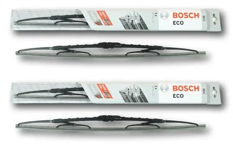 Nowe wycieraczki – zapakowane w oryginalne opakowanie producenta – cena zakupu dotyczy 1- kompletu (strona kierowcy i pasażera).Wycieraczki Bosch Eco są przeznaczone dla klientów, którzy poszukują wycieraczek w korzystnej cenie, a jednocześnie dobrych jakościowo.Konstrukcja wycieraczek Bosch Eco to sprawdzone już wcześniej rozwiązanie, a mianowicie metalowy, lakierowany szkielet z nitowanymi przegubami. Są to wycieraczki przeznaczone do montażu na mocowaniu hakowym.Pióra wycieraczki Bosch Eco to naturalna guma i grafitowa powłoka poślizgowa, dzięki której wycieranie szyby jest skuteczne nawet w niesprzyjających warunkach atmosferycznych.Zamontowany na stałe adapterQuick-Clip umożliwia łatwą i szybką wymianę wycieraczek Bosch Eco.Jak dbać o wycieraczki:- pamiętaj, aby dbać o gumę wycieraczki usuwając z niej brud, owady itp., które osiadły podczas jej pracy (wykorzystać można do tego łagodny detergent); zapominanie o usuwaniu zanieczyszczeń, może doprowadzić do uszkodzenia gumy wycieraczki- nigdy nie używaj wycieraczek, gdy szyba jest sucha; tarcie gumy po suchej szybie może doprowadzić do szybkiego jej zużycia- jeżeli wycieraczka na szybie podskakuje, może to być oznaką, że ramię wycieraczki jest skrzywione; w takim przypadku należy dokonać jego regulacji- jeżeli planujesz pozostawienie samochodu na słońcu przez kilka dni, ustaw wycieraczki tak, aby nie stykały się z szybą- po wizycie na myjni, pamiętaj, aby zawsze dokładnie oczyścić szybę, ponieważ znajdujący się na niej wosk, może powodować przeskakiwanie wycieraczki- pamiętaj również, aby nie uruchamiać wycieraczek na zamarzniętej szybie; może to bowiem doprowadzić do ich uszkodzenia lub oderwania gumy od mocowania.Czy wiesz że:- pierwsza wycieraczka wprowadzona została przez Boscha w okresie międzywojennym w 1926r. i napędzana była silnikiem elektrycznym- pierwszą wycieraczkę bezprzegubową – Bosch wprowadził do produkcji w 1999r.- 750000 cykli oczyszczania! Tak wycieraczki Bosch są testowane pod kątem wytrzymałości mechanicznej- wycieraczki Bosch są przystosowane do pracy w temperaturach od -30 do +80 stopni Celsjusza.