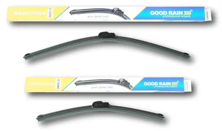 Nowe wycieraczki ;  zapakowane woryginalne opakowanie producenta. Cena zakupu dotyczy 1kompletu (stronakierowcy i pasażera).Wycieraczki Good Rain na przednią szybęsamochodu posiadają  konstrukcję bezprzegubową. Guma w wycieraczkachpokryta jest specjalną powłoką, dzięki, której szyba jest bardzo dobrzeczyszczona. Na całej długości wycieraczki znajduje się spojler, któregozadaniem jest dociskanie jej do powierzchni szyby, nawet przy dużychprędkościach. Duży wpływ na dobre przyleganie wycieraczek do szyby samochodu marównież zastosowana w ich konstrukcji specjalna prowadnica, dzięki, której siłanacisku jest  regularnie rozłożona na całej długości pióra wycieraczki. Stałynadzór nad  procesem  produkcji oraz wysokiej jakości produkty użytedo ich wykonania sprawiają , że wycieraczki te, profesjonalnie spisują się wkażdych warunkach atmosferycznych.   Zalety wycieraczek Good Rain:- bardzo łatwy montażna ramiona- wysoka jakość za przystępną cenę- skuteczne wycieranie szyby- zmniejszenie szumu powietrza poprzez bardziejopływowy kształt- zaawansowana technologia i nowoczesnywyglądJak dbać o wycieraczki:- pamiętaj, aby dbać o gumę wycieraczkiusuwając z niej brud, owady itp., które osiadły podczas jej pracy (wykorzystaćmożna do tego łagodny detergent); zapominanie o usuwaniu zanieczyszczeń, możedoprowadzić do uszkodzenia gumy wycieraczki- nigdy nie używaj wycieraczek, gdyszyba jest sucha;  tarcie gumy po suchej szybie może doprowadzić doszybkiego jej zużycia- jeżeli wycieraczka na szybiepodskakuje, może to być oznaką, że ramię wycieraczki jest skrzywione; w takimprzypadku należy dokonać jego regulacji- jeżeli planujesz pozostawieniesamochodu  na słońcu przez kilka dni, ustaw wycieraczki tak, aby niestykały się z szybą- po wizycie na myjni, pamiętaj, abyzawsze dokładnie oczyścić szybę, ponieważ znajdujący się na niej wosk, możepowodować przeskakiwanie wycieraczki- pamiętaj również,aby nie uruchamiać wycieraczek  na zamarzniętej szybie; może to bowiemdoprowadzić do ich uszkodzenia lub oderwania gumy od mocowania.