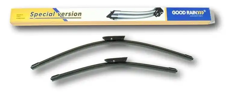 Nowe wycieraczki ;  zapakowane woryginalne opakowanie producenta. Cena zakupu dotyczy 1kompletu (stronakierowcy i pasażera).Wycieraczki Good Rain na przednią szybęsamochodu posiadają  konstrukcję bezprzegubową. Guma w wycieraczkachpokryta jest specjalną powłoką, dzięki, której szyba jest bardzo dobrzeczyszczona. Na całej długości wycieraczki znajduje się spojler, któregozadaniem jest dociskanie jej do powierzchni szyby, nawet przy dużychprędkościach. Duży wpływ na dobre przyleganie wycieraczek do szyby samochodu marównież zastosowana w ich konstrukcji specjalna prowadnica, dzięki, której siłanacisku jest  regularnie rozłożona na całej długości pióra wycieraczki. Stałynadzór nad  procesem  produkcji oraz wysokiej jakości produkty użytedo ich wykonania sprawiają , że wycieraczki te, profesjonalnie spisują się wkażdych warunkach atmosferycznych.   Zalety wycieraczek Good Rain:- bardzo łatwy montażna ramiona- wysoka jakość za przystępną cenę- skuteczne wycieranie szyby- zmniejszenie szumu powietrza poprzez bardziejopływowy kształt- zaawansowana technologia i nowoczesnywyglądJak dbać o wycieraczki:- pamiętaj, aby dbać o gumę wycieraczkiusuwając z niej brud, owady itp., które osiadły podczas jej pracy (wykorzystaćmożna do tego łagodny detergent); zapominanie o usuwaniu zanieczyszczeń, możedoprowadzić do uszkodzenia gumy wycieraczki- nigdy nie używaj wycieraczek, gdyszyba jest sucha;  tarcie gumy po suchej szybie może doprowadzić doszybkiego jej zużycia- jeżeli wycieraczka na szybiepodskakuje, może to być oznaką, że ramię wycieraczki jest skrzywione; w takimprzypadku należy dokonać jego regulacji- jeżeli planujesz pozostawieniesamochodu  na słońcu przez kilka dni, ustaw wycieraczki tak, aby niestykały się z szybą- po wizycie na myjni, pamiętaj, abyzawsze dokładnie oczyścić szybę, ponieważ znajdujący się na niej wosk, możepowodować przeskakiwanie wycieraczki- pamiętaj również,aby nie uruchamiać wycieraczek  na zamarzniętej szybie; może to bowiemdoprowadzić do ich uszkodzenia lub oderwania gumy od mocowania.