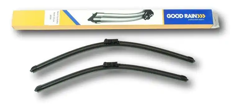 Nowe wycieraczki ;  zapakowane woryginalne opakowanie producenta. Cena zakupu dotyczy 1kompletu (stronakierowcy i pasażera).Wycieraczki Good Rain na przednią szybęsamochodu posiadają  konstrukcję bezprzegubową. Guma w wycieraczkachpokryta jest specjalną powłoką, dzięki, której szyba jest bardzo dobrzeczyszczona. Na całej długości wycieraczki znajduje się spojler, któregozadaniem jest dociskanie jej do powierzchni szyby, nawet przy dużychprędkościach. Duży wpływ na dobre przyleganie wycieraczek do szyby samochodu marównież zastosowana w ich konstrukcji specjalna prowadnica, dzięki, której siłanacisku jest  regularnie rozłożona na całej długości pióra wycieraczki. Stałynadzór nad  procesem  produkcji oraz wysokiej jakości produkty użytedo ich wykonania sprawiają , że wycieraczki te, profesjonalnie spisują się wkażdych warunkach atmosferycznych.   Zalety wycieraczek Good Rain:- bardzo łatwy montażna ramiona- wysoka jakość za przystępną cenę- skuteczne wycieranie szyby- zmniejszenie szumu powietrza poprzez bardziejopływowy kształt- zaawansowana technologia i nowoczesnywyglądJak dbać o wycieraczki:- pamiętaj, aby dbać o gumę wycieraczkiusuwając z niej brud, owady itp., które osiadły podczas jej pracy (wykorzystaćmożna do tego łagodny detergent); zapominanie o usuwaniu zanieczyszczeń, możedoprowadzić do uszkodzenia gumy wycieraczki- nigdy nie używaj wycieraczek, gdyszyba jest sucha;  tarcie gumy po suchej szybie może doprowadzić doszybkiego jej zużycia- jeżeli wycieraczka na szybiepodskakuje, może to być oznaką, że ramię wycieraczki jest skrzywione; w takimprzypadku należy dokonać jego regulacji- jeżeli planujesz pozostawieniesamochodu  na słońcu przez kilka dni, ustaw wycieraczki tak, aby niestykały się z szybą- po wizycie na myjni, pamiętaj, abyzawsze dokładnie oczyścić szybę, ponieważ znajdujący się na niej wosk, możepowodować przeskakiwanie wycieraczki- pamiętaj również,aby nie uruchamiać wycieraczek  na zamarzniętej szybie; może to bowiemdoprowadzić do ich uszkodzenia lub oderwania gumy od mocowania.