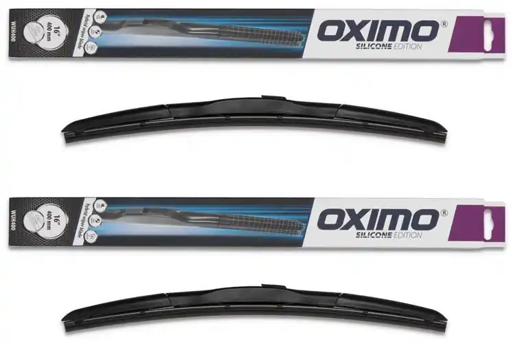 Wycieraczki hybrydowe Oximo to produkt nowy w oryginalnym opakowaniu producenta.Cena zakupu dotyczy 1- kompletu odpowiednio dobranych długości (strona kierowcy oraz strona pasażera) dla danego modelu pojazdu.Wycieraczki hybrydowe Oximo dedykowane są do samochodów z mocowaniem na tzw. „haczyk” w kształcie litery „U”.W wycieraczkach hybrydowych Oximo zastosowano nowoczesne połączenie konstrukcji bezprzegubowej i szkieletowej. Dobre przyleganie wycieraczki do powierzchni szyby zapewnia zintegrowany spojler. Elementy z tworzywa wykonane są z wysokogatunkowego stopu. Wysoka jakość wycieraczek Oximo zapewnia optymalną widoczność w każdych warunkach pogodowych.   Zalety wycieraczek hybrydowych Oximo:- bardzo prosty montaż na ramiona- wysoka jakość za przystępną cenę- skuteczne wycieranie szyby- zmniejszenie szumu powietrza poprzez bardziej opływowy kształt- zaawansowana technologia i nowoczesny wyglądJak dbać o wycieraczki:- pamiętaj, aby dbać o gumę wycieraczki usuwając z niej brud, owady itp., które osiadły podczas jej pracy (wykorzystać można do tego łagodny detergent); zapominanie o usuwaniu zanieczyszczeń, może doprowadzić do uszkodzenia gumy wycieraczki- nigdy nie używaj wycieraczek, gdy szyba jest sucha;  tarcie gumy po suchej szybie może doprowadzić do szybkiego jej zużycia- jeżeli wycieraczka na szybie podskakuje, może to być oznaką, że ramię wycieraczki jest skrzywione; w takim przypadku należy dokonać jego regulacji- jeżeli planujesz pozostawienie samochodu  na słońcu przez kilka dni, ustaw wycieraczki tak, aby nie stykały się z szybą- po wizycie na myjni, pamiętaj, aby zawsze dokładnie oczyścić szybę, ponieważ znajdujący się na niej wosk, może powodować przeskakiwanie wycieraczki- pamiętaj również, aby nie uruchamiać wycieraczek  na zamarzniętej szybie; może to bowiem doprowadzić do ich uszkodzenia lub oderwania gumy od mocowania.