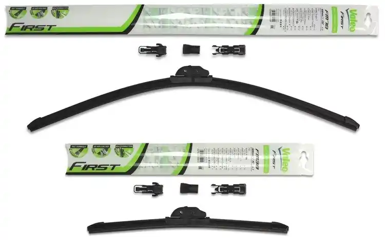 Nowe wycieraczki; zapakowane w oryginalne opakowanie producenta. Cena zakupu dotyczy 1kompletu (strona kierowcy i pasażera).Wycieraczki Valeo First Multiconnection to wysoka jakość i atrakcyjna cena.Bezszkieletowe wycieraczki Valeo First posiadają metalowe listwy, które zapewniają optymalny docisk do powierzchni szyby, a tym samym doskonałą widoczność nawet w niekorzystnych warunkach atmosferycznych.Gumowe pióra wycieraczek wykonane są ze specjalnej mieszanki obrabianego kauczuku, co znacznie poprawia skuteczność czyszczenia powierzchni szyby.Innowacyjny kształt spojlera w technologii „PYRAMID” zapewnia optymalny docisk do powierzchni szyby oraz cichą pracę nawet przy dużych prędkościach.Na opakowaniu wycieraczek First Multiconnection podany jest sposób ich montażu oraz przykładowa lista zastosowań.Wycieraczki First zostały zaprojektowane i wyprodukowane na całkowicie zautomatyzowanych liniach montażowych w nowych fabrykach Valeo.W opakowaniu wycieraczek First Multiconnection znajduje się kilka adapterów. Klient samodzielnie wybiera i montuje właściwy adapter. Zalety wycieraczek Valeo First Multiconnection:- bardzo łatwy montaż- precyzyjne wycieranie szyby- zmniejszenie szumu powietrza poprzez bardziej opływowy kształt- nie zamarzanie zimą poszczególnych elementów wycieraczki- nowoczesny wygląd- spojler na całej długości, poprawiający przyleganie wycieraczki do powierzchni szyby przy dużych  prędkościach.Jak dbać o wycieraczki:- pamiętaj, aby dbać o gumę wycieraczki usuwając z niej brud, owady itp., które osiadły podczas jej pracy (wykorzystać można do tego łagodny detergent); zapominanie o usuwaniu zanieczyszczeń, może doprowadzić do uszkodzenia gumy wycieraczki- nigdy nie używaj wycieraczek, gdy szyba jest sucha;  tarcie gumy po suchej szybie może doprowadzić do szybkiego jej zużycia- jeżeli wycieraczka na szybie podskakuje, może to być oznaką, że ramię wycieraczki jest skrzywione; w takim przypadku należy dokonać jego regulacji- jeżeli planujesz pozostawienie samochodu  na słońcu przez kilka dni, ustaw wycieraczki tak, aby nie stykały się z szybą- po wizycie na myjni, pamiętaj, aby zawsze dokładnie oczyścić szybę, ponieważ znajdujący się na niej wosk, może powodować przeskakiwanie wycieraczki- pamiętaj również, aby nie uruchamiać wycieraczek na zamarzniętej szybie; może to bowiem doprowadzić do ich uszkodzenia lub oderwania gumy od mocowania.