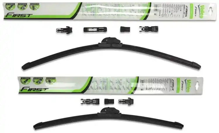 Nowe wycieraczki; zapakowane w oryginalne opakowanie producenta. Cena zakupu dotyczy 1kompletu (strona kierowcy i pasażera).Wycieraczki Valeo First Multiconnection to wysoka jakość i atrakcyjna cena.Bezszkieletowe wycieraczki Valeo First posiadają metalowe listwy, które zapewniają optymalny docisk do powierzchni szyby, a tym samym doskonałą widoczność nawet w niekorzystnych warunkach atmosferycznych.Gumowe pióra wycieraczek wykonane są ze specjalnej mieszanki obrabianego kauczuku, co znacznie poprawia skuteczność czyszczenia powierzchni szyby.Innowacyjny kształt spojlera w technologii „PYRAMID” zapewnia optymalny docisk do powierzchni szyby oraz cichą pracę nawet przy dużych prędkościach.Na opakowaniu wycieraczek First Multiconnection podany jest sposób ich montażu oraz przykładowa lista zastosowań.Wycieraczki First zostały zaprojektowane i wyprodukowane na całkowicie zautomatyzowanych liniach montażowych w nowych fabrykach Valeo.W opakowaniu wycieraczek First Multiconnection znajduje się kilka adapterów. Klient samodzielnie wybiera i montuje właściwy adapter. Zalety wycieraczek Valeo First Multiconnection:- bardzo łatwy montaż- precyzyjne wycieranie szyby- zmniejszenie szumu powietrza poprzez bardziej opływowy kształt- nie zamarzanie zimą poszczególnych elementów wycieraczki- nowoczesny wygląd- spojler na całej długości, poprawiający przyleganie wycieraczki do powierzchni szyby przy dużych  prędkościach.Jak dbać o wycieraczki:- pamiętaj, aby dbać o gumę wycieraczki usuwając z niej brud, owady itp., które osiadły podczas jej pracy (wykorzystać można do tego łagodny detergent); zapominanie o usuwaniu zanieczyszczeń, może doprowadzić do uszkodzenia gumy wycieraczki- nigdy nie używaj wycieraczek, gdy szyba jest sucha;  tarcie gumy po suchej szybie może doprowadzić do szybkiego jej zużycia- jeżeli wycieraczka na szybie podskakuje, może to być oznaką, że ramię wycieraczki jest skrzywione; w takim przypadku należy dokonać jego regulacji- jeżeli planujesz pozostawienie samochodu  na słońcu przez kilka dni, ustaw wycieraczki tak, aby nie stykały się z szybą- po wizycie na myjni, pamiętaj, aby zawsze dokładnie oczyścić szybę, ponieważ znajdujący się na niej wosk, może powodować przeskakiwanie wycieraczki- pamiętaj również, aby nie uruchamiać wycieraczek na zamarzniętej szybie; może to bowiem doprowadzić do ich uszkodzenia lub oderwania gumy od mocowania.