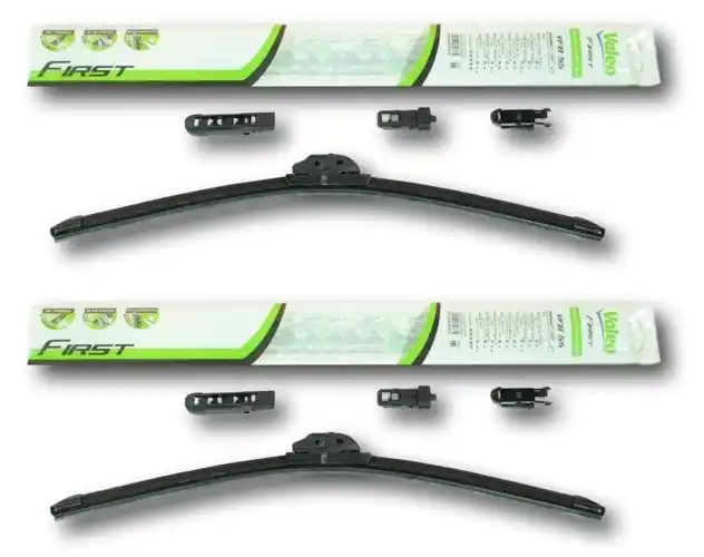 Nowe wycieraczki; zapakowane w oryginalne opakowanie producenta. Cena zakupu dotyczy 1kompletu (strona kierowcy i pasażera).Wycieraczki Valeo First Multiconnection to wysoka jakość i atrakcyjna cena.Bezszkieletowe wycieraczki Valeo First posiadają metalowe listwy, które zapewniają optymalny docisk do powierzchni szyby, a tym samym doskonałą widoczność nawet w niekorzystnych warunkach atmosferycznych.Gumowe pióra wycieraczek wykonane są ze specjalnej mieszanki obrabianego kauczuku, co znacznie poprawia skuteczność czyszczenia powierzchni szyby.Innowacyjny kształt spojlera w technologii „PYRAMID” zapewnia optymalny docisk do powierzchni szyby oraz cichą pracę nawet przy dużych prędkościach.Na opakowaniu wycieraczek First Multiconnection podany jest sposób ich montażu oraz przykładowa lista zastosowań.Wycieraczki First zostały zaprojektowane i wyprodukowane na całkowicie zautomatyzowanych liniach montażowych w nowych fabrykach Valeo.W opakowaniu wycieraczek First Multiconnection znajduje się kilka adapterów. Klient samodzielnie wybiera i montuje właściwy adapter. Zalety wycieraczek Valeo First Multiconnection:- bardzo łatwy montaż- precyzyjne wycieranie szyby- zmniejszenie szumu powietrza poprzez bardziej opływowy kształt- nie zamarzanie zimą poszczególnych elementów wycieraczki- nowoczesny wygląd- spojler na całej długości, poprawiający przyleganie wycieraczki do powierzchni szyby przy dużych  prędkościach.Jak dbać o wycieraczki:- pamiętaj, aby dbać o gumę wycieraczki usuwając z niej brud, owady itp., które osiadły podczas jej pracy (wykorzystać można do tego łagodny detergent); zapominanie o usuwaniu zanieczyszczeń, może doprowadzić do uszkodzenia gumy wycieraczki- nigdy nie używaj wycieraczek, gdy szyba jest sucha;  tarcie gumy po suchej szybie może doprowadzić do szybkiego jej zużycia- jeżeli wycieraczka na szybie podskakuje, może to być oznaką, że ramię wycieraczki jest skrzywione; w takim przypadku należy dokonać jego regulacji- jeżeli planujesz pozostawienie samochodu  na słońcu przez kilka dni, ustaw wycieraczki tak, aby nie stykały się z szybą- po wizycie na myjni, pamiętaj, aby zawsze dokładnie oczyścić szybę, ponieważ znajdujący się na niej wosk, może powodować przeskakiwanie wycieraczki- pamiętaj również, aby nie uruchamiać wycieraczek na zamarzniętej szybie; może to bowiem doprowadzić do ich uszkodzenia lub oderwania gumy od mocowania.
