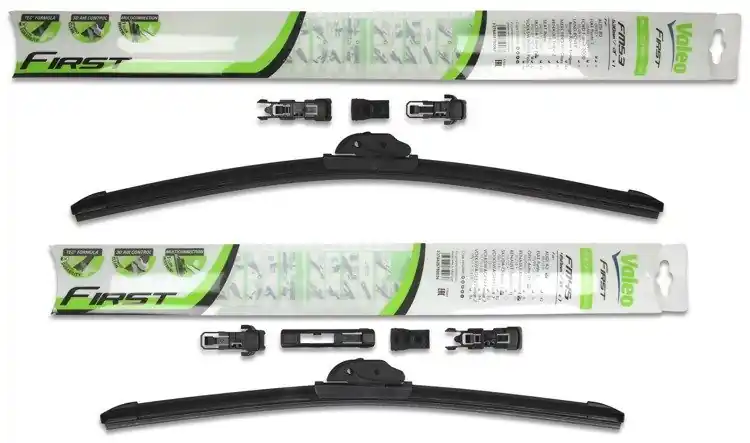 Nowe wycieraczki; zapakowane w oryginalne opakowanie producenta. Cena zakupu dotyczy 1kompletu (strona kierowcy i pasażera).Wycieraczki Valeo First Multiconnection to wysoka jakość i atrakcyjna cena.Bezszkieletowe wycieraczki Valeo First posiadają metalowe listwy, które zapewniają optymalny docisk do powierzchni szyby, a tym samym doskonałą widoczność nawet w niekorzystnych warunkach atmosferycznych.Gumowe pióra wycieraczek wykonane są ze specjalnej mieszanki obrabianego kauczuku, co znacznie poprawia skuteczność czyszczenia powierzchni szyby.Innowacyjny kształt spojlera w technologii „PYRAMID” zapewnia optymalny docisk do powierzchni szyby oraz cichą pracę nawet przy dużych prędkościach.Na opakowaniu wycieraczek First Multiconnection podany jest sposób ich montażu oraz przykładowa lista zastosowań.Wycieraczki First zostały zaprojektowane i wyprodukowane na całkowicie zautomatyzowanych liniach montażowych w nowych fabrykach Valeo.W opakowaniu wycieraczek First Multiconnection znajduje się kilka adapterów. Klient samodzielnie wybiera i montuje właściwy adapter. Zalety wycieraczek Valeo First Multiconnection:- bardzo łatwy montaż- precyzyjne wycieranie szyby- zmniejszenie szumu powietrza poprzez bardziej opływowy kształt- nie zamarzanie zimą poszczególnych elementów wycieraczki- nowoczesny wygląd- spojler na całej długości, poprawiający przyleganie wycieraczki do powierzchni szyby przy dużych  prędkościach.Jak dbać o wycieraczki:- pamiętaj, aby dbać o gumę wycieraczki usuwając z niej brud, owady itp., które osiadły podczas jej pracy (wykorzystać można do tego łagodny detergent); zapominanie o usuwaniu zanieczyszczeń, może doprowadzić do uszkodzenia gumy wycieraczki- nigdy nie używaj wycieraczek, gdy szyba jest sucha;  tarcie gumy po suchej szybie może doprowadzić do szybkiego jej zużycia- jeżeli wycieraczka na szybie podskakuje, może to być oznaką, że ramię wycieraczki jest skrzywione; w takim przypadku należy dokonać jego regulacji- jeżeli planujesz pozostawienie samochodu  na słońcu przez kilka dni, ustaw wycieraczki tak, aby nie stykały się z szybą- po wizycie na myjni, pamiętaj, aby zawsze dokładnie oczyścić szybę, ponieważ znajdujący się na niej wosk, może powodować przeskakiwanie wycieraczki- pamiętaj również, aby nie uruchamiać wycieraczek na zamarzniętej szybie; może to bowiem doprowadzić do ich uszkodzenia lub oderwania gumy od mocowania.