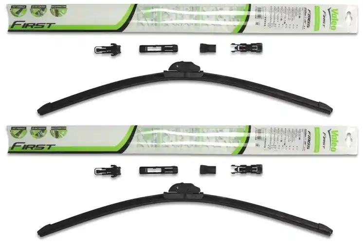 Nowe wycieraczki; zapakowane w oryginalne opakowanie producenta. Cena zakupu dotyczy 1kompletu (strona kierowcy i pasażera).Wycieraczki Valeo First Multiconnection to wysoka jakość i atrakcyjna cena.Bezszkieletowe wycieraczki Valeo First posiadają metalowe listwy, które zapewniają optymalny docisk do powierzchni szyby, a tym samym doskonałą widoczność nawet w niekorzystnych warunkach atmosferycznych.Gumowe pióra wycieraczek wykonane są ze specjalnej mieszanki obrabianego kauczuku, co znacznie poprawia skuteczność czyszczenia powierzchni szyby.Innowacyjny kształt spojlera w technologii „PYRAMID” zapewnia optymalny docisk do powierzchni szyby oraz cichą pracę nawet przy dużych prędkościach.Na opakowaniu wycieraczek First Multiconnection podany jest sposób ich montażu oraz przykładowa lista zastosowań.Wycieraczki First zostały zaprojektowane i wyprodukowane na całkowicie zautomatyzowanych liniach montażowych w nowych fabrykach Valeo.W opakowaniu wycieraczek First Multiconnection znajduje się kilka adapterów. Klient samodzielnie wybiera i montuje właściwy adapter. Zalety wycieraczek Valeo First Multiconnection:- bardzo łatwy montaż- precyzyjne wycieranie szyby- zmniejszenie szumu powietrza poprzez bardziej opływowy kształt- nie zamarzanie zimą poszczególnych elementów wycieraczki- nowoczesny wygląd- spojler na całej długości, poprawiający przyleganie wycieraczki do powierzchni szyby przy dużych  prędkościach.Jak dbać o wycieraczki:- pamiętaj, aby dbać o gumę wycieraczki usuwając z niej brud, owady itp., które osiadły podczas jej pracy (wykorzystać można do tego łagodny detergent); zapominanie o usuwaniu zanieczyszczeń, może doprowadzić do uszkodzenia gumy wycieraczki- nigdy nie używaj wycieraczek, gdy szyba jest sucha;  tarcie gumy po suchej szybie może doprowadzić do szybkiego jej zużycia- jeżeli wycieraczka na szybie podskakuje, może to być oznaką, że ramię wycieraczki jest skrzywione; w takim przypadku należy dokonać jego regulacji- jeżeli planujesz pozostawienie samochodu  na słońcu przez kilka dni, ustaw wycieraczki tak, aby nie stykały się z szybą- po wizycie na myjni, pamiętaj, aby zawsze dokładnie oczyścić szybę, ponieważ znajdujący się na niej wosk, może powodować przeskakiwanie wycieraczki- pamiętaj również, aby nie uruchamiać wycieraczek na zamarzniętej szybie; może to bowiem doprowadzić do ich uszkodzenia lub oderwania gumy od mocowania.