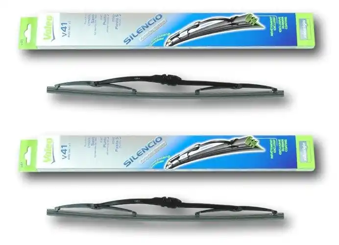 Nowe wycieraczki – zapakowane w oryginalne opakowanie producenta – cena zakupu dotyczy 1kompletu (strona kierowcy i pasażera).Wycieraczki Valeo Silencio na przednią szybę posiadają konstrukcję klasyczną i zbudowane są z metalowych przegubów. Specjalny skład gumy sprawia, że doskonale spisują się w każdych warunkach atmosferycznych. Guma posiada specjalne struktury(kanaliki) do rozprowadzania „płynu do spryskiwaczy” po całej powierzchni szyby. Ponadto guma wycieraczki pokryta została specjalną warstwą grafitu zapewniającą optymalne wycieranie szyby. Gama wycieraczek Valeo Silencio to najwyżej sklasyfikowana gama klasycznych wycieraczek firmy Valeo. Wycieraczki posiadają wskaźnik zużycia, który stopniowo zmienia kolor z czarnego na żółty, sygnalizując potrzebę ewentualnej ich wymiany. Wycieraczki montuje się bardzo szybko i sprawnie; obrazkowa instrukcja montażu znajduje się na ich opakowaniu.Zalety wycieraczek Valeo Silencio:- bardzo łatwy montaż- precyzyjne wycieranie szyby- najwyższa jakość wykonania oraz zastosowanych materiałówJak dbać o wycieraczki:- pamiętaj, aby dbać o gumę wycieraczki usuwając z niej brud, owady itp., które osiadły podczas jej pracy (wykorzystać można do tego łagodny detergent); zapominanie o usuwaniu zanieczyszczeń, może doprowadzić do uszkodzenia gumy wycieraczki- nigdy nie używaj wycieraczek, gdy szyba jest sucha; tarcie gumy po suchej szybie może doprowadzić do szybkiego jej zużycia- jeżeli wycieraczka na szybie podskakuje, może to być oznaką, że ramię wycieraczki jest skrzywione; w takim przypadku należy dokonać jego regulacji- jeżeli planujesz pozostawienie samochodu na słońcu przez kilka dni, ustaw wycieraczki tak, aby nie stykały się z szybą- po wizycie na myjni, pamiętaj, aby zawsze dokładnie oczyścić szybę, ponieważ znajdujący się na niej wosk, może powodować przeskakiwanie wycieraczki- pamiętaj również, aby nie uruchamiać wycieraczek na zamarzniętej szybie, może to bowiem doprowadzić do ich uszkodzenia lub oderwania gumy od mocowania.