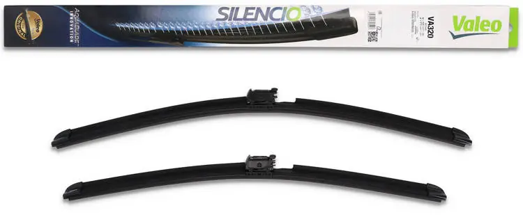 Nowe wycieraczki ;  zapakowane w oryginalne opakowanie producenta. Cena zakupu dotyczy 1kompletu (strona kierowcy i pasażera).Wycieraczki Valeo Silencio na przednią szybę mają  konstrukcję aerodynamiczną i nie posiadają klasycznych przegubów. Na całej ich długości znajduje się spojler, który ma za zadanie dociskać wycieraczkę do szyby, nawet przy dużych prędkościach. W konstrukcji wycieraczki zastosowano stalowe listwy, dzięki którym wycieraczka  dobrze przylega do szyby  ( regularnie rozłożona  siła  nacisku na całej długości pióra wycieraczki). Specjalny skład gumy sprawia, że doskonale spisują się one w każdych warunkach atmosferycznych; dodatkowo guma ta posiada specjalne struktury (kanaliki), które rozprowadzają płyn  do spryskiwaczy po całej szybie. Wycieraczki montuje siębardzo szybko i sprawnie; obrazkowa instrukcja montażu znajduje się na ichopakowaniu. Zalety wycieraczek Valeo Silencio:- precyzyjne wycieranie szyby- zmniejszenie szumu powietrza poprzez bardziej opływowy kształt- nie zamarzanie zimą poszczególnych elementów wycieraczki (jej konstrukcja składa się z 6-7 elementów)- nowoczesny wygląd- spojler na całej długości, poprawiający przyleganie wycieraczki do powierzchni szyby przy dużych  prędkościach.Jak dbać o wycieraczki:- pamiętaj, aby dbać o gumę wycieraczki usuwając z niej brud, owady itp., które osiadły podczas jej pracy (wykorzystać można do tego łagodny detergent); zapominanie o usuwaniu zanieczyszczeń, może doprowadzić do uszkodzenia gumy wycieraczki- nigdy nie używaj wycieraczek, gdy szyba jest sucha;  tarcie gumy po suchej szybie może doprowadzić do szybkiego jej zużycia- jeżeli wycieraczka na szybie podskakuje, może to być oznaką, że ramię wycieraczki jest skrzywione; w takim przypadku należy dokonać jego regulacji- jeżeli planujesz pozostawienie samochodu  na słońcu przez kilka dni, ustaw wycieraczki tak, aby nie stykały się z szybą- po wizycie na myjni, pamiętaj, aby zawsze dokładnie oczyścić szybę, ponieważ znajdujący się na niej wosk, może powodować przeskakiwanie wycieraczki- pamiętaj również, aby nie uruchamiać wycieraczek na zamarzniętej szybie; może to bowiem doprowadzić do ich uszkodzenia lub oderwania gumy od mocowania.