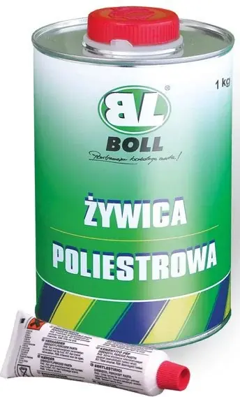 BOLL ŻYWICA POLIESTROWA ZESTAW NAPRAWCZY 1KG Środek, który wpołączeniu zmatą lub tkaniną szklaną BOLL służy do wypełniania znacznych ubytków materiału wkaroseriach samochodowych, łodziach, przyczepach itp. jak ido wzmacniania iusztywniania konstrukcji naprawianych elementów. Posiada bardzo dobrą przyczepność do metalu, powierzchni plastikowych, stali, szkła ibetonu. Jest odporna na temperaturę do 80°C orazcechuje się dużą sprężystością ikrótkim czasem utwardzenia. Po utwardzeniu posiada dużą wytrzymałość mechaniczną imoże być pokrywana dowolnymi szpachlami poliestrowymi. INDEKS: 002192