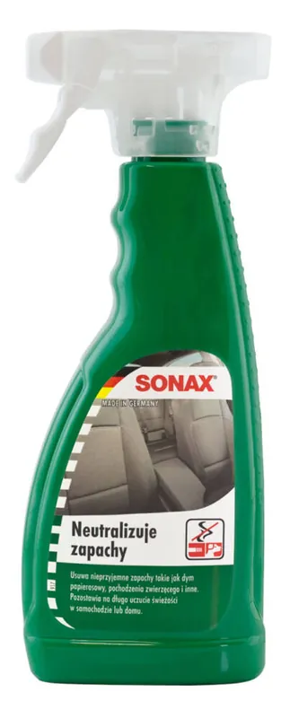Opis produktu i zastosowanieUsuwa nieprzyjemne zapachy pochodzenia zwierzęcego, nikotyny itp., zarówno w samochodzie, jak i w mieszkaniu. Nieprzyjemne zapachy nie są jedynie maskowane, lecz całkowicie neutralizowane. Zawiera niewielki dodatek perfum, które zapewniają delikatny, przyjemny i długo utrzymujący się zapach. Nadaje się do tapicerki, siedzeń, dywanów, zasłon, materiałów, butów, ubrań oraz jako odświeżacz powietrza.