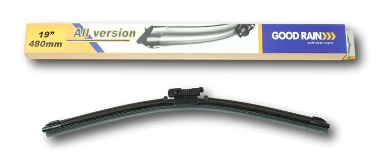 Nowa wycieraczka – zapakowana w oryginalneopakowanie producenta – cena zakupu dotyczy 1sztuki.Bardzo ważnajest również widoczność w tylnej szybie samochodu. Należy pamiętać więc także owycieraczce tylnej. Wycieraczki Good Rain posiadają  konstrukcję bezprzegubową. Guma w wycieraczkach pokryta jest specjalną powłoką, dzięki, której szyba jest bardzo dobrze czyszczona. Duży wpływ na dobre przyleganie wycieraczek do szyby samochodu ma również zastosowana w ich konstrukcji specjalna prowadnica, dzięki, której siła nacisku jest  regularnie rozłożona na całej długości pióra wycieraczki. Stały nadzór nad  procesem  produkcji oraz wysokiej jakości produkty użyte do ich wykonania sprawiają , że wycieraczki te, profesjonalnie spisują się w każdych warunkach atmosferycznych.Jak dbać o wycieraczki:- pamiętaj,aby dbać o gumę wycieraczki usuwając z niej brud, owady itp., które osiadłypodczas jej pracy (wykorzystać można do tego łagodny detergent); zapominanie ousuwaniu zanieczyszczeń, może doprowadzić do uszkodzenia gumy wycieraczki- nigdy nieużywaj wycieraczek, gdy szyba jest sucha; tarcie gumy po suchej szybie może doprowadzić do szybkiego jej zużycia- jeżeli wycieraczka na szybie podskakuje,może to być oznaką, że ramię wycieraczki jest skrzywione; w takim przypadkunależy dokonać jego regulacji- jeżeliplanujesz pozostawienie samochodu na słońcu przez kilka dni, ustaw wycieraczki tak,aby nie stykały się z szybą- po wizyciena myjni, pamiętaj, aby zawsze dokładnie oczyścić szybę, ponieważ znajdującysię na niej wosk, może powodować przeskakiwanie wycieraczki- pamiętajrównież, aby nie uruchamiać wycieraczek na zamarzniętej szybie; może to bowiem doprowadzićdo ich uszkodzenia lub oderwania gumy od mocowania.