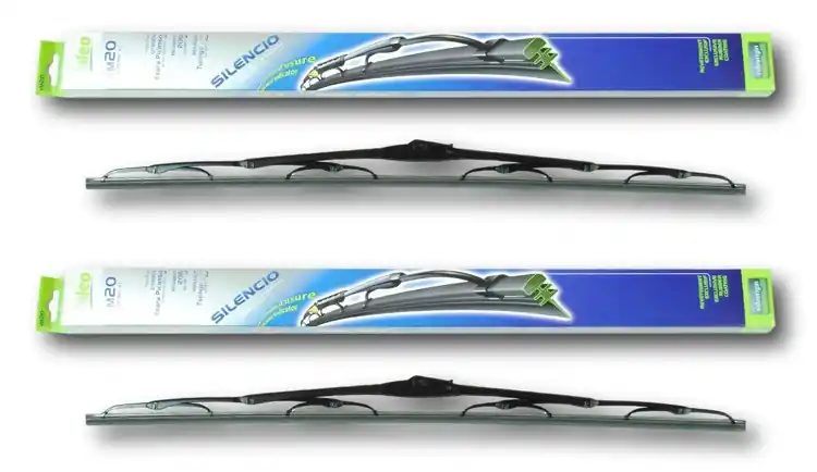 Nowe wycieraczki – zapakowane w oryginalne opakowanie producenta – cena zakupu dotyczy 1kompletu (strona kierowcy i pasażera).Wycieraczki Valeo Silencio na przednią szybę posiadają konstrukcję klasyczną i zbudowane są z metalowych przegubów. Specjalny skład gumy sprawia, że doskonale spisują się w każdych warunkach atmosferycznych. Guma posiada specjalne struktury(kanaliki) do rozprowadzania „płynu do spryskiwaczy” po całej powierzchni szyby. Ponadto guma wycieraczki pokryta  została specjalną warstwą grafitu zapewniającą optymalne wycieranie szyby. Gama wycieraczek Valeo Silencio to najwyżej sklasyfikowana gama klasycznych wycieraczek firmy Valeo. Wycieraczki posiadają wskaźnik zużycia, który stopniowo zmienia kolor z czarnego na żółty, sygnalizując potrzebę ewentualnej ich wymiany. Wycieraczki montuje się bardzo szybko i sprawnie; obrazkowa instrukcja montażu znajduje się na ich opakowaniu.Zalety wycieraczek Valeo Silencio:- bardzo łatwy montaż- precyzyjne wycieranie szyby- najwyższa jakość wykonania oraz zastosowanych materiałówJak dbać o wycieraczki:- pamiętaj, aby dbać o gumę wycieraczki usuwając z niej brud, owady itp., które osiadły podczas jej pracy (wykorzystać można do tego łagodny detergent); zapominanie o usuwaniu zanieczyszczeń, może doprowadzić do uszkodzenia gumy wycieraczki- nigdy nie używaj wycieraczek, gdy szyba jest sucha;  tarcie gumy po suchej szybie może doprowadzić do szybkiego jej zużycia- jeżeli wycieraczka na szybie podskakuje, może to być oznaką, że ramię wycieraczki jest skrzywione; w takim przypadku należy dokonać jego regulacji- jeżeli planujesz pozostawienie samochodu na słońcu przez kilka dni, ustaw wycieraczki tak, aby nie stykały się z szybą- po wizycie na myjni, pamiętaj, aby zawsze dokładnie oczyścić szybę, ponieważ znajdujący się na niej wosk, może powodować przeskakiwanie wycieraczki- pamiętaj również, aby nie uruchamiać wycieraczek na zamarzniętej szybie, może to bowiem doprowadzić do ich uszkodzenia lub oderwania gumy od mocowania.