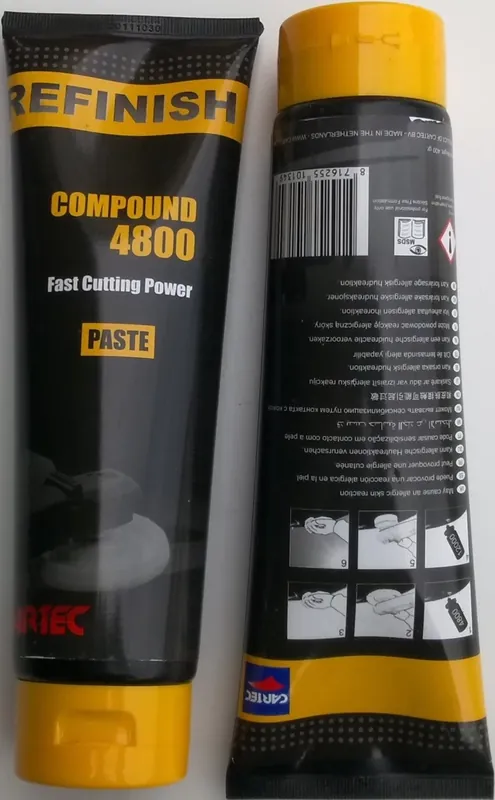 COMPOUND 4800 – SKUTECZNA ALTERNATYWA DLA PAST POLERSKICH FIRMY 3 M Compound 4800 to szybki mikrościerny środek polerski, łatwy wzastosowaniu oparty na specjalnie dobranej mikro-ściernej technologii. Compound 4800 usuwa defekty lakiernicze, efekt pomarańczowej skórki orazusuwa szybko itrwale zmatowienia po wcześniejszym zastosowaniu padu ściernego P1500. Compound 4800 jest przeznaczony do renowacji silnie zniszczonych iutlenionych lakierów. Uzyskuje wysoki połysk końcowy już wpierwszym etapie. Ten środek polerski jest również odpowiedni do nowych iodświeżonych lakierów. Dzięki specjalnej formule Compound 4800 osiąga łatwo iszybko żądany rezultat. Compound 4800 niewymaga dodania wody oszczędzając przy tym czas wprocesie iczyszczeniu. Środek polerski może być stosowany ręcznie lub mechanicznie. Nie zawiera olejków silikonowych.