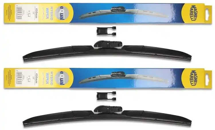 Nowe wycieraczki; zapakowane w oryginalne opakowanie producenta. Cena zakupu dotyczy 1kompletu (strona kierowcy i pasażera).  Wycieraczki hybrydowe Magneti Marelli to wyjątkowa konstrukcja i najwyższa jakość materiałów:- Guma – ponad 50% kauczuku naturalnego z grafitową powłoką; wewnątrz gumy podwójna stal nierdzewna.- Złącze – materiał POM (tworzywo termoplastyczne o wysokiej wytrzymałości mechanicznej i odporne na ciepło)- Spojler – materiał ABSWycieraczki montuje się bardzo szybko i sprawnie; obrazkowa instrukcja montażu znajduje się na ich opakowaniu.Zalety wycieraczek hybrydowych Magneti Marelli1.Jeden uniwersalny adapter w wycieraczkach hybrydowych Magneti Marelli znajduje zastosowanie w czterech różnych ramionach wycieraczek, co sprawia, że pasują do większości modeli samochodów.2. Sztywne gumowe pióro z grafitową powłoką w wycieraczce hybrydowej Magneti Marelli zapewnia bardziej skuteczne wycieranie powierzchni szyby.3. Wycieraczki hybrydowe Magneti Marelli dzięki zaawansowanej technologii, mogą zastąpić dotychczasowe tradycyjne wycieraczki w starszych modelach samochodów, a ich wymiana jest szybka i łatwa.4. Wycieraczki hybrydowe Magneti Marelli są odporne na niekorzystne warunki atmosferyczne ; zakres temperatury, w których ich praca odbywa się bez zakłóceń to -25ºC do +50ºC.5. Jakość materiałów użytych do produkcji wycieraczek hybrydowych Magneti Marelli zapewnia ich wytrzymałość oraz cichą pracę.6. Nowoczesny design zastosowany w wycieraczkach hybrydowych Magneti Marelli sprawia, że to jedne z bardziej poszukiwanych wycieraczek na świecie.  Jak dbać o wycieraczki:- pamiętaj, aby dbać o gumę wycieraczki usuwając z niej brud, owady itp., które osiadły podczas jej pracy (wykorzystać można do tego łagodny detergent); zapominanie o usuwaniu zanieczyszczeń, może doprowadzić do uszkodzenia gumy wycieraczki- nigdy nie używaj wycieraczek, gdy szyba jest sucha;  tarcie gumy po suchej szybie może doprowadzić do szybkiego jej zużycia- jeżeli wycieraczka na szybie podskakuje, może to być oznaką, że ramię wycieraczki jest skrzywione; w takim przypadku należy dokonać jego regulacji- jeżeli planujesz pozostawienie samochodu  na słońcu przez kilka dni, ustaw wycieraczki tak, aby nie stykały się z szybą- po wizycie na myjni, pamiętaj, aby zawsze dokładnie oczyścić szybę, ponieważ znajdujący się na niej wosk, może powodować przeskakiwanie wycieraczki- pamiętaj również, aby nie uruchamiać wycieraczek na zamarzniętej szybie; może to bowiem doprowadzić do ich uszkodzenia lub oderwania gumy od mocowania.